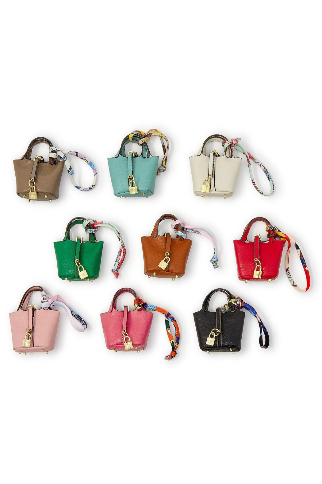 Elevate the charm of your tote with our Tiny Tote Bag Charm in an array of delightful colors. Crafted from a combination of high-quality PU, durable alloy, and nylon, this accessory is both stylish and sturdy. Whether you opt for the vibrant shades of Green, Pink, and Red or the more neutral hues like Luggage Tan and Taupe, this chic charm is the perfect finishing touch for your handbag.