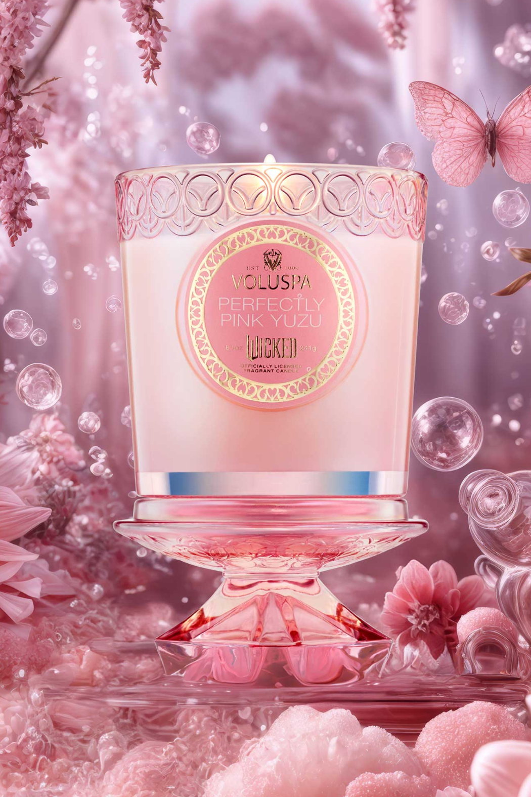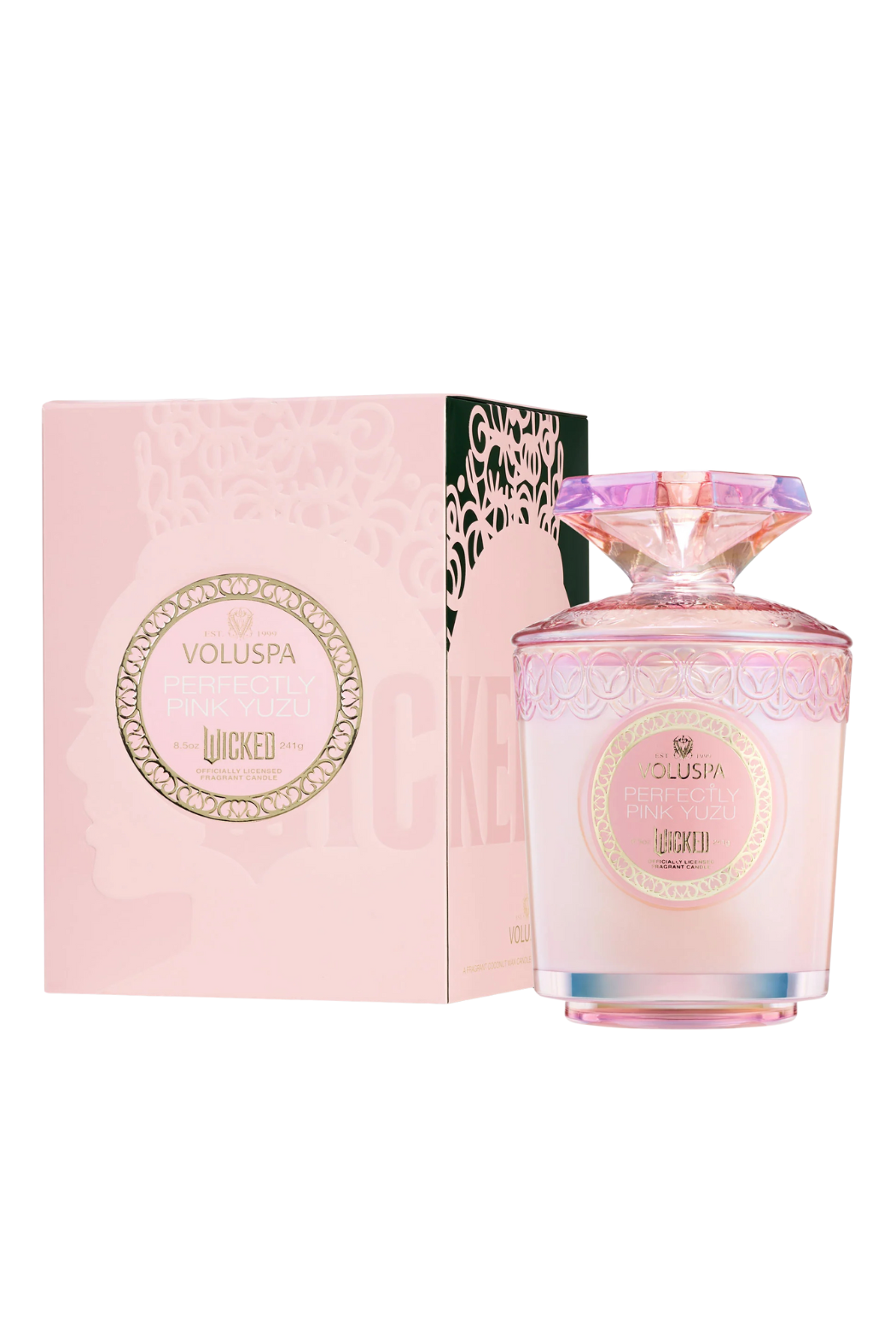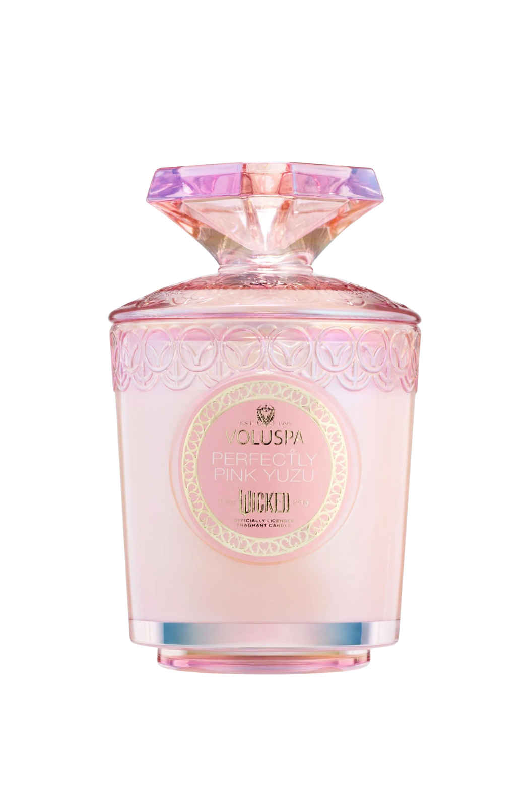 Notes of Perfectly Pink Yuzu, Sparkling Sea Salt, Candied Flowers, and Vanilla Bubbles. You've been Galinda-fied by a Perfectly Pink Fragrance that will thrillify the senses and captivate the room. Spells of Perfectly Pink Yuzu, Sparkling Sea Salt, Candied Flowers and Vanilla Bubbles accessorize the atmosphere. When the room needs a makeover, Perfectly Pink Yuzu takes over.