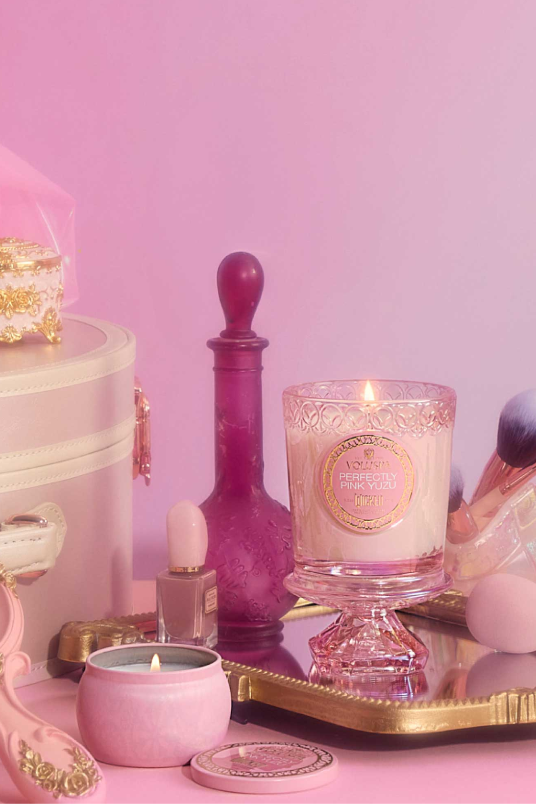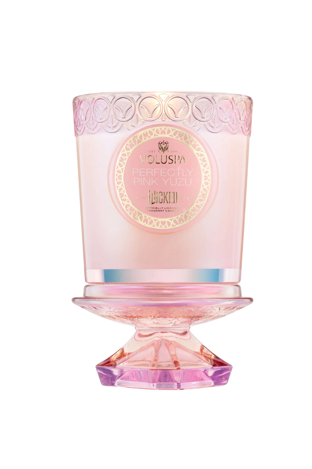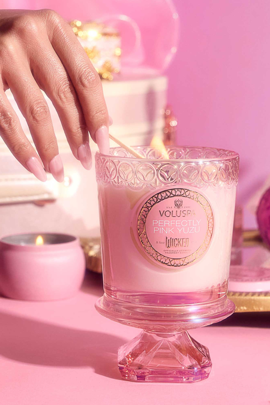Notes of Perfectly Pink Yuzu, Sparkling Sea Salt, Candied Flowers, and Vanilla Bubbles. You've been Galinda-fied by a Perfectly Pink Fragrance that will thrillify the senses and captivate the room. Spells of Perfectly Pink Yuzu, Sparkling Sea Salt, Candied Flowers and Vanilla Bubbles accessorize the atmosphere. When the room needs a makeover, Perfectly Pink Yuzu takes over.