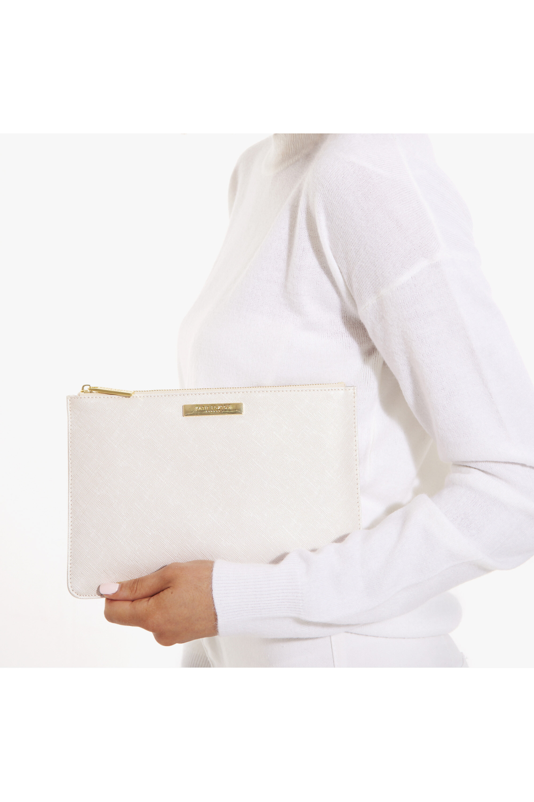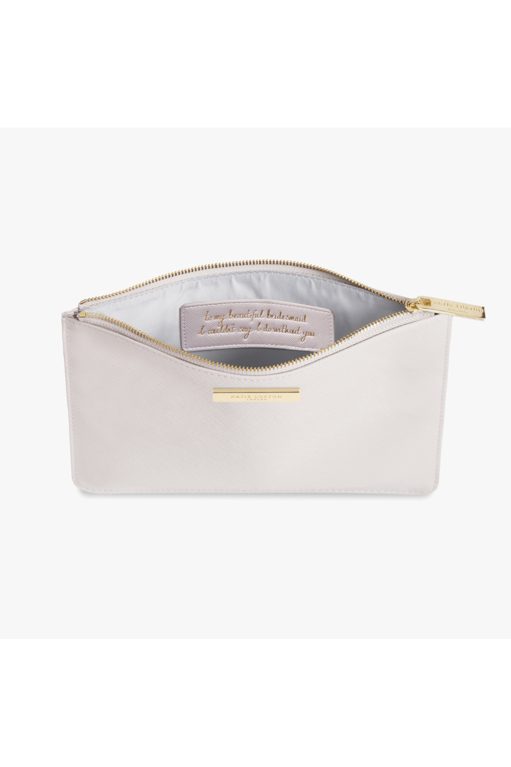 Give your bridesmaid the perfect gift with this beautiful pearly white pouch, complete with a sweet hidden sentiment on the inside, "To my beautiful bridesmaid, I couldn't say I do without you". The perfect keepsake of your big day. Finished in the most beautiful pearlescent luster, this softly shimmering pouch has the palest pink and champagne undertones.