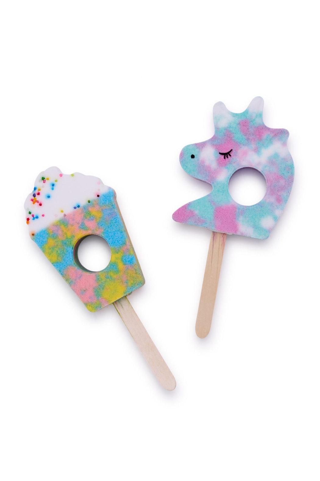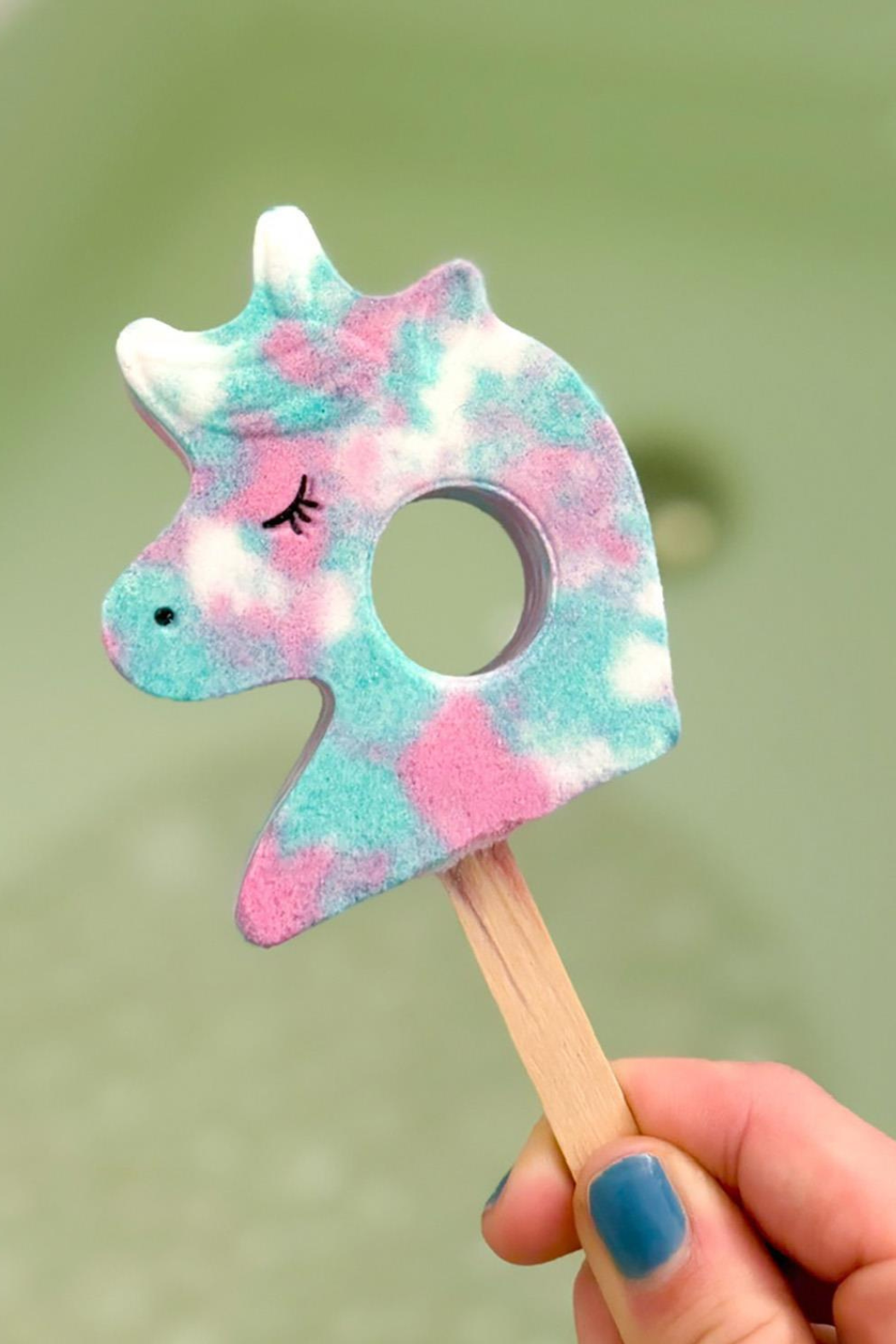 Delicately scented like bubble gum, these enchanting fizzers come in two delightful designs. Simply Submerge the bath bomb into warm water and watch it fizz and dissolve, then blow into the center hole of the wand to create mesmerizing bubbles.