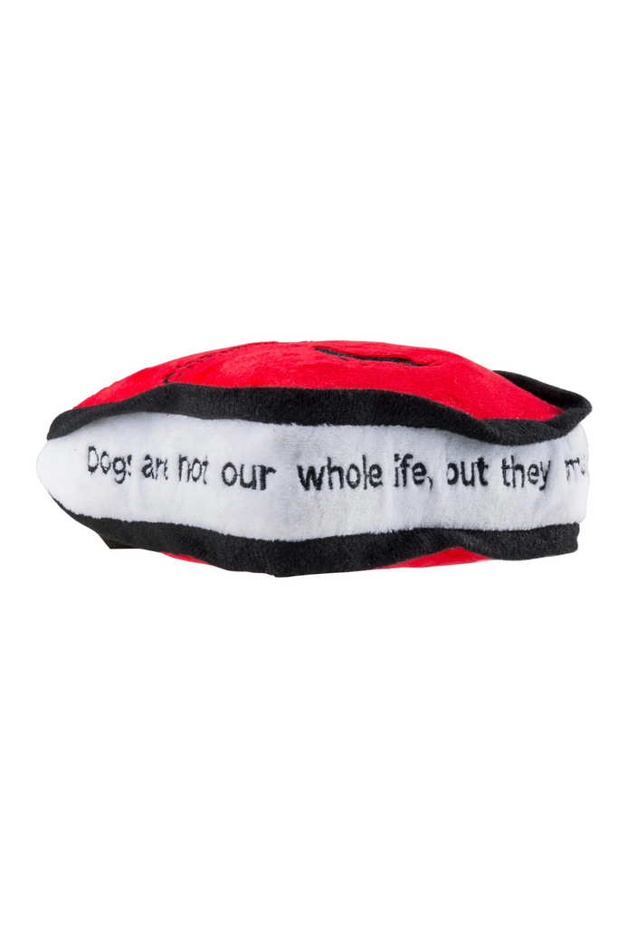 For the downward dog who loves to both fetch and stretch! Our Chewlulemon Bag toy is sure to help them enter their play chakra with the soft, plush exterior and the hidden squeaker inside! The underside of the bag reminds us that ‘Dogs are not our whole life, but they make our life whole’. The