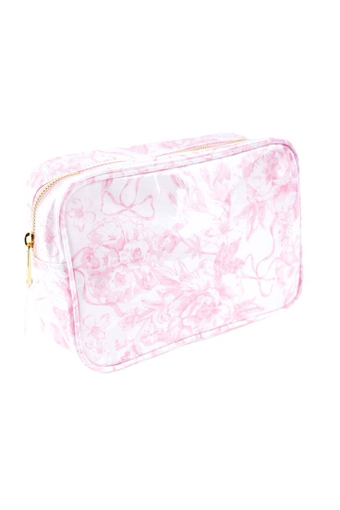 Discover elegance & practicality with these Clear Coated Rectangular Cosmetic Cases. Designed for the modern traveler, this chic case offers ample space at 8.75 x 6 x 3 inches to store all your beauty essentials. Crafted from durable PVC & polyester, it boasts a sleek, glossy finish that effortlessly combines style & function. The gold metal hardware adds a touch of sophistication, while the secure zip closure ensures your items are safe & organized. Inside, the fully lined, wipe-clean interior makes it easy to maintain pristine condition, even after inevitable makeup mishaps.