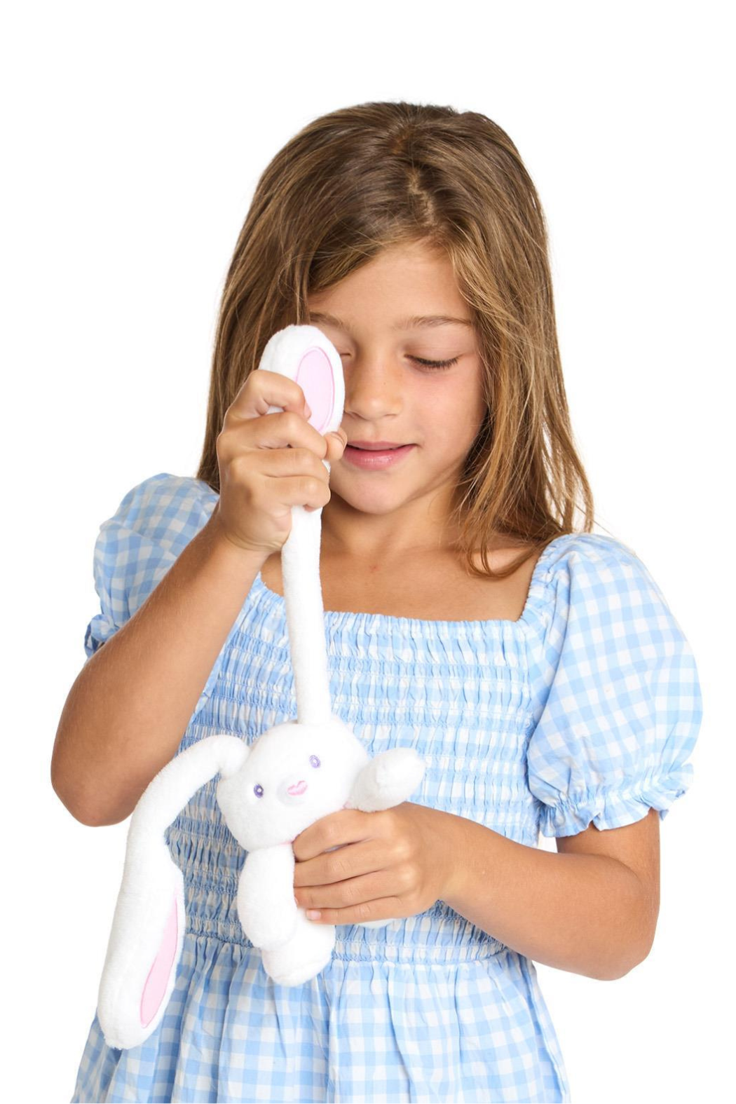 This plush pal has extra-long, floppy ears and feet that can reverse for two adorable looks in one. Soft as a cloud and huggable from head to toe, this bunny is perfect for cuddles, dress-up fun, and endless imaginative play.