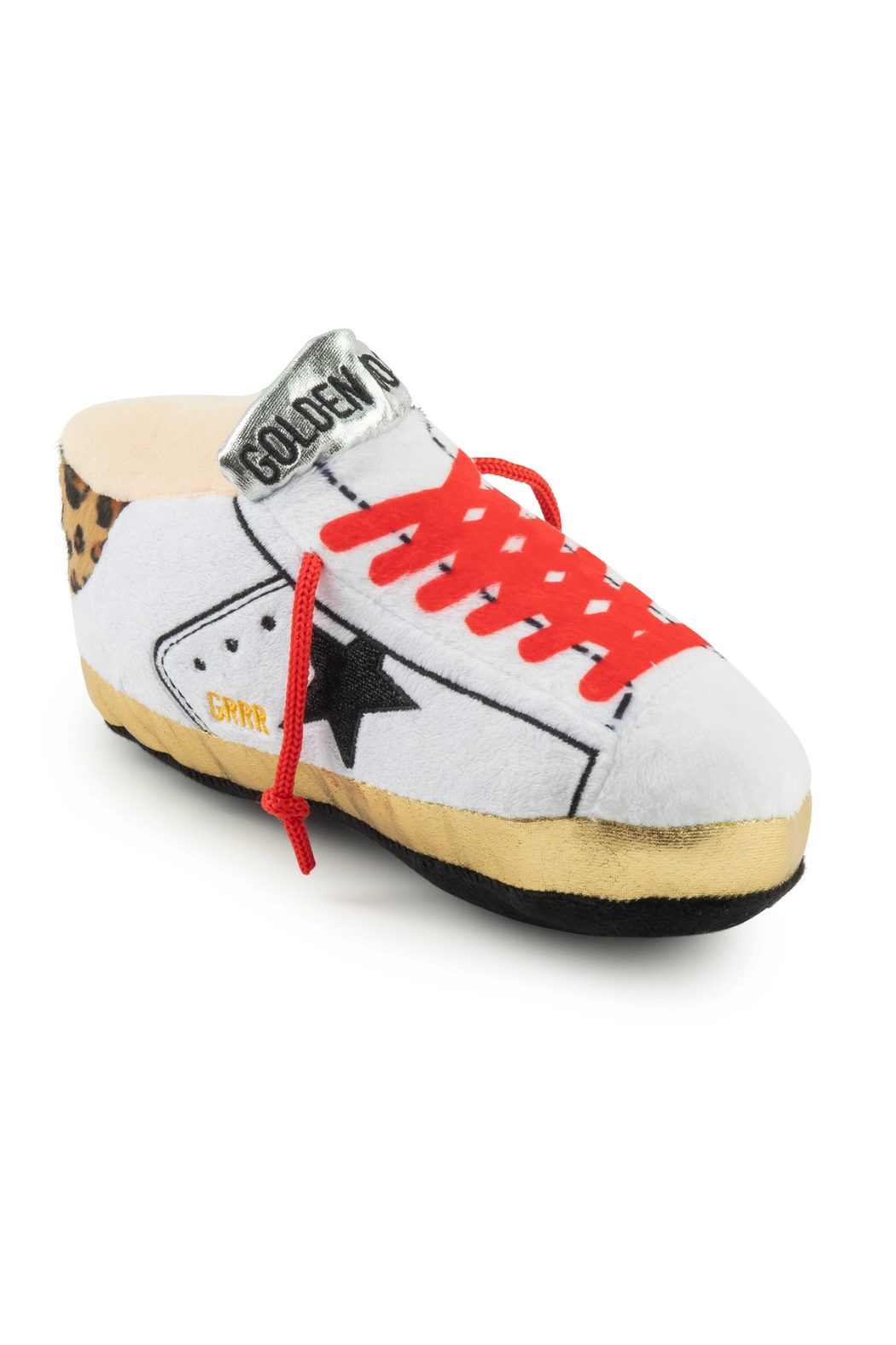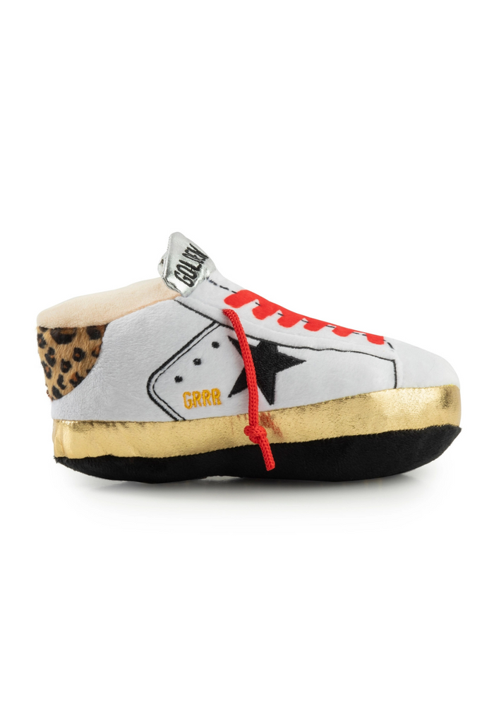 Get the distressed sneaker toy with soul! Our parody take on the iconic tennis shoe is not only jaw-dropping, it’s also drool-inducing! Just like the original, the plush white exterior is sure to become more authentic-looking with age. Unlike the original, this one features a delightful squeaker inside that will instantly make it a favorite with your furry fashionista!