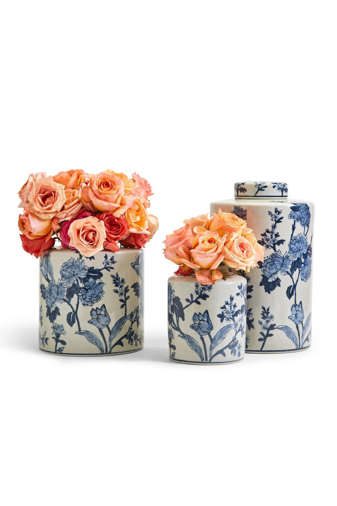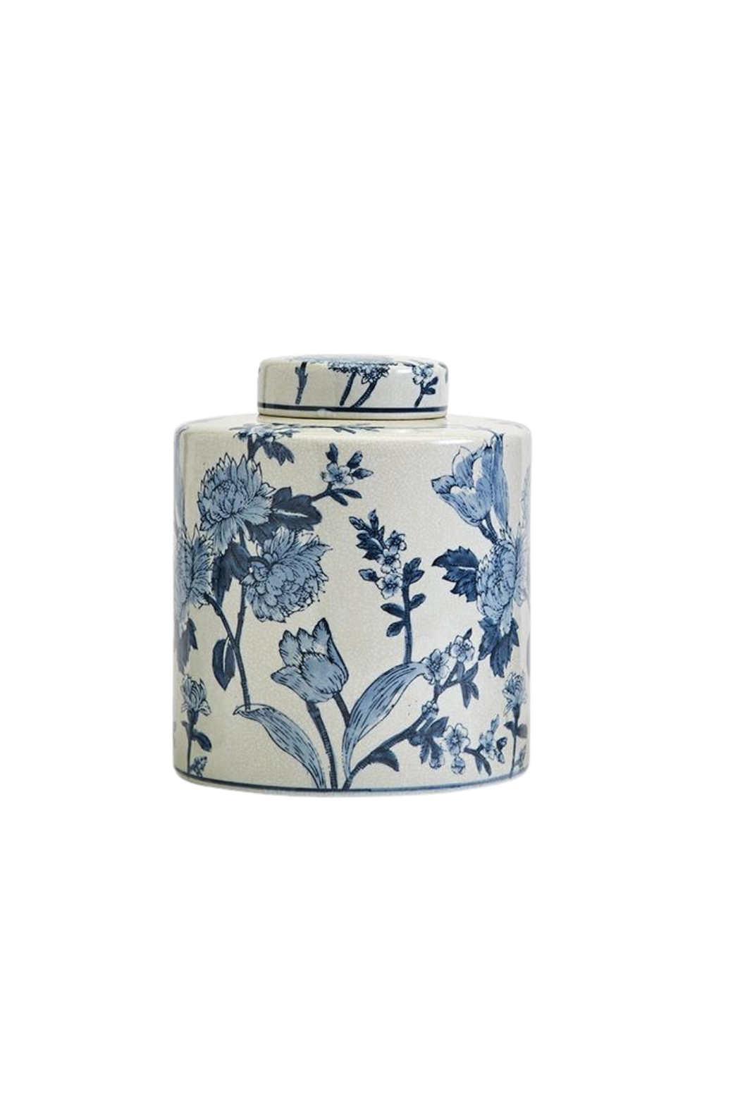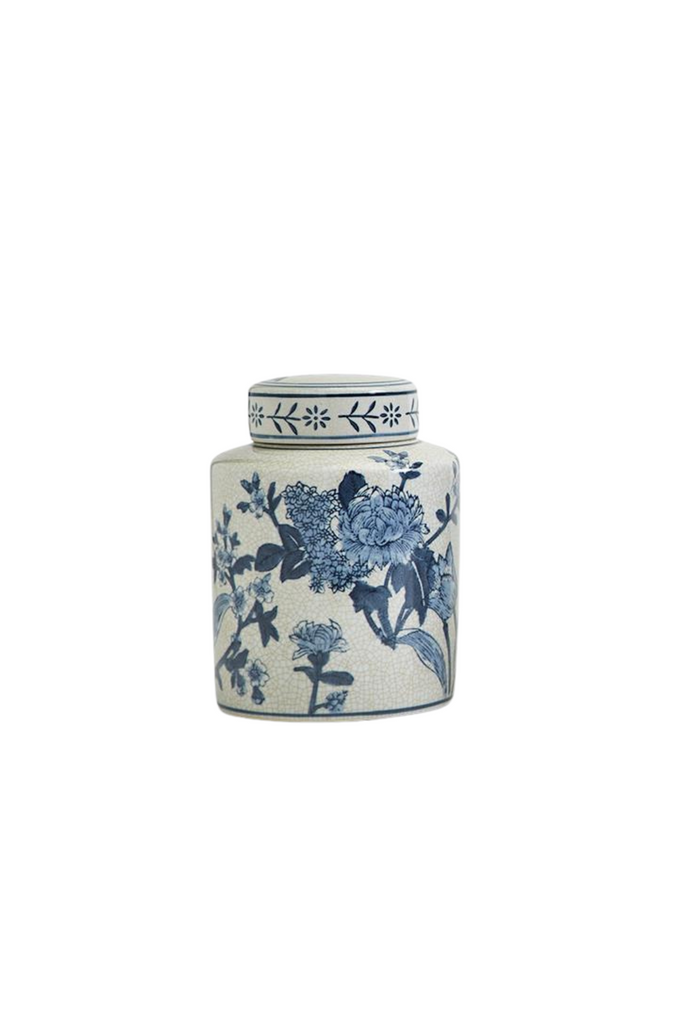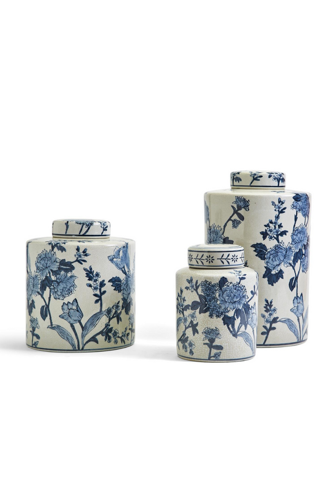 Japanese Blossom Blue and White Decorative Tea Jars with Crackle Finish (variations and small imperfections are hallmarks of handcraftsmanship)