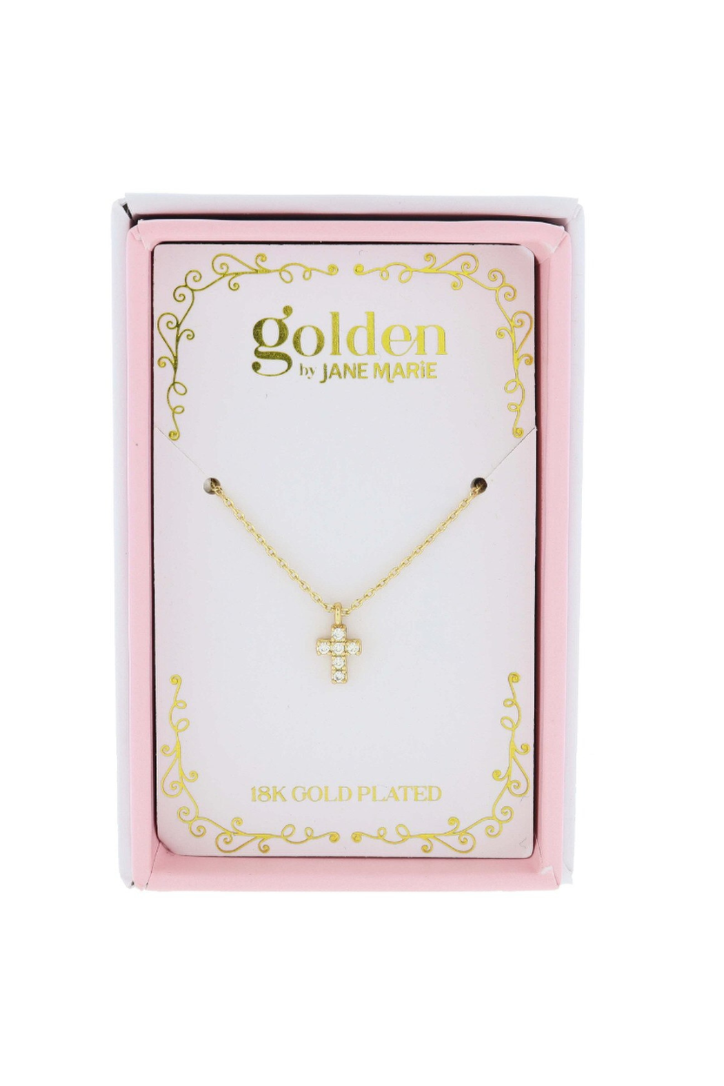 Elevate your child's style with the Kids 18K Gold Plated Pave Mini Crystal Cross necklace by Jane Marie.