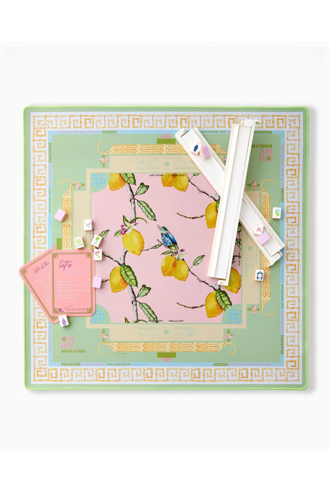 Infuse your game with elegance and whimsy with the Citrus Songbird Mat, a beautiful collaboration with CoCo Zentner! This mat showcases a delicate palette of pale green, pink, and yellow, perfectly complemented by a charming design featuring lemons and a pretty watercolor bird. The combination of soft colors and intricate details brings a refreshing, artistic touch to your mahjong sessions
