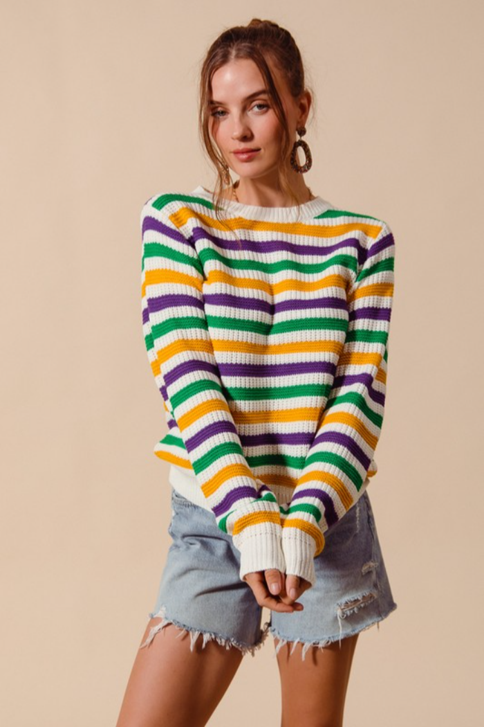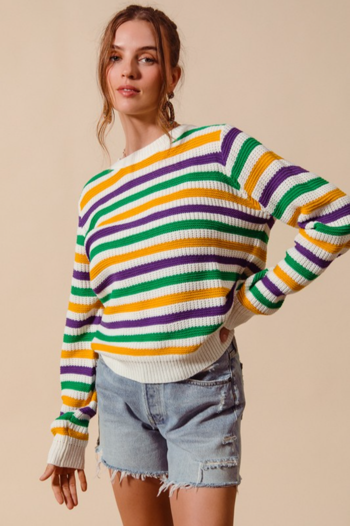 MARDI GRAS COLOR STRIPE KNIT SWEATER TOP