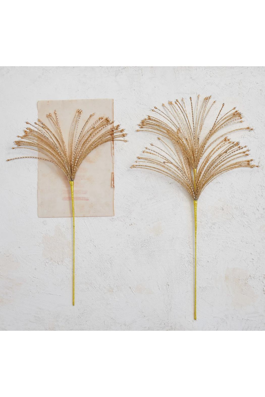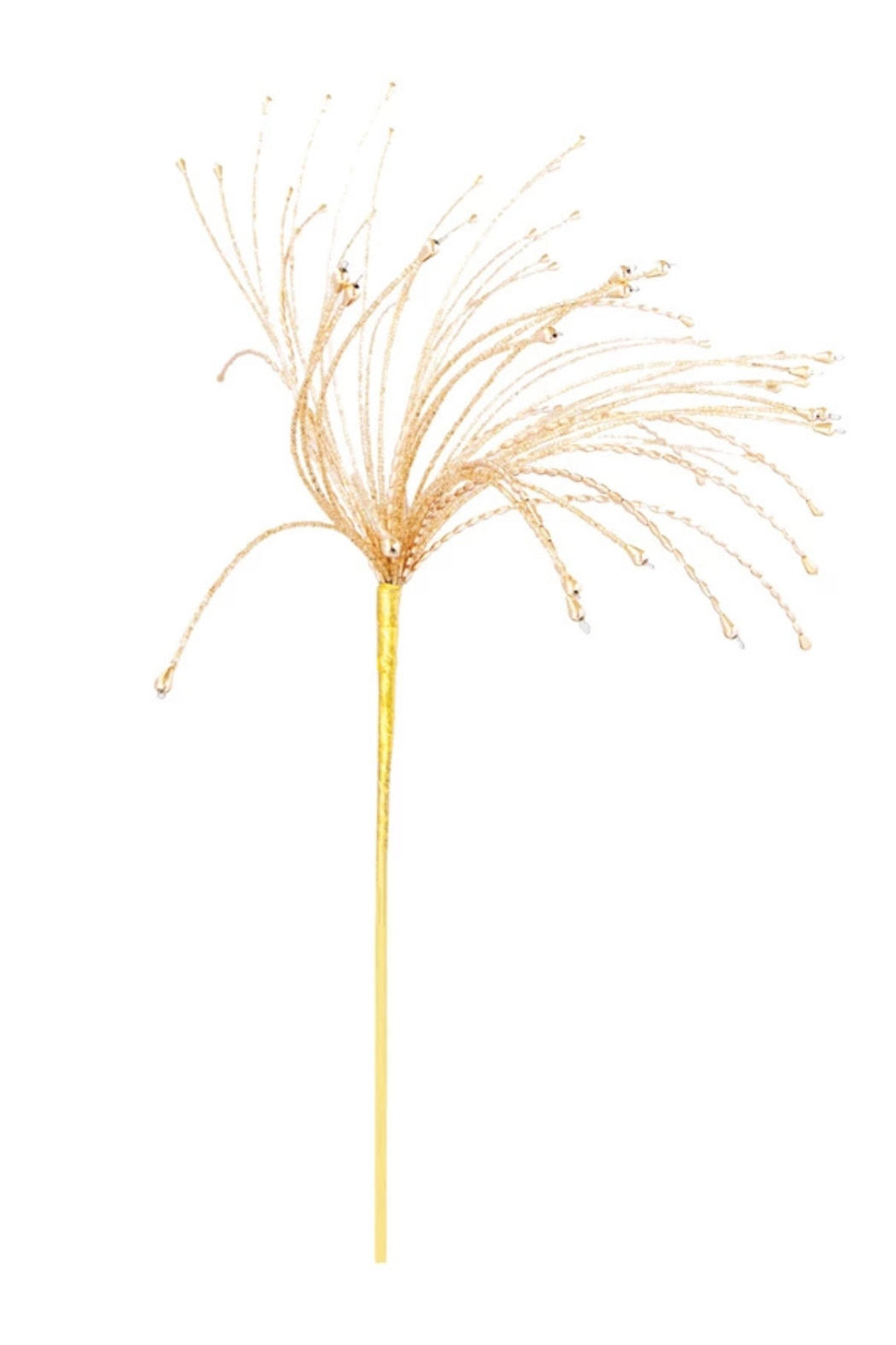 A lively and sparkling metal and glass beaded sprays with a gold finish and an organic shape. A perfect addition to any space that needs some glamour and shine. Ideal for placing in the vase, basket, or wall, or for making a wreath or bouquet.