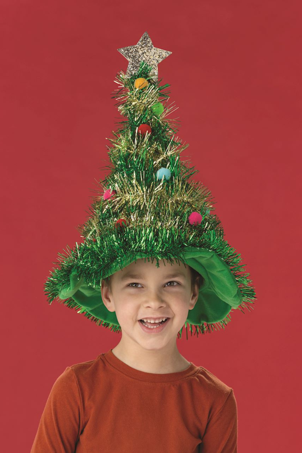 Wear it on your head or place it on the table - musical tinsel tree hat sings and dances to the music. Requires 3 AA batteries, not included. Ages 3-103!