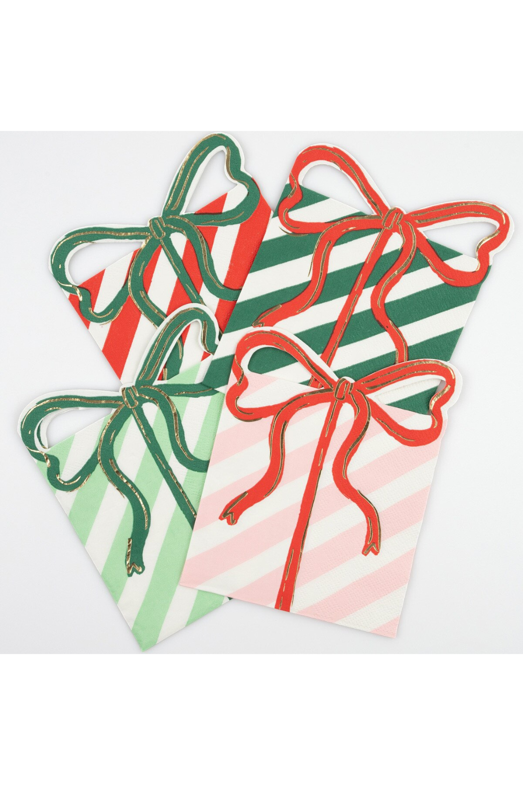 Wow your guests with these elegant napkins. These pretty present shaped delights in festive colors, with cut out bows, will make a stylish statement on your party table too. They're perfect for cocktail parties, festive drinks and meals.