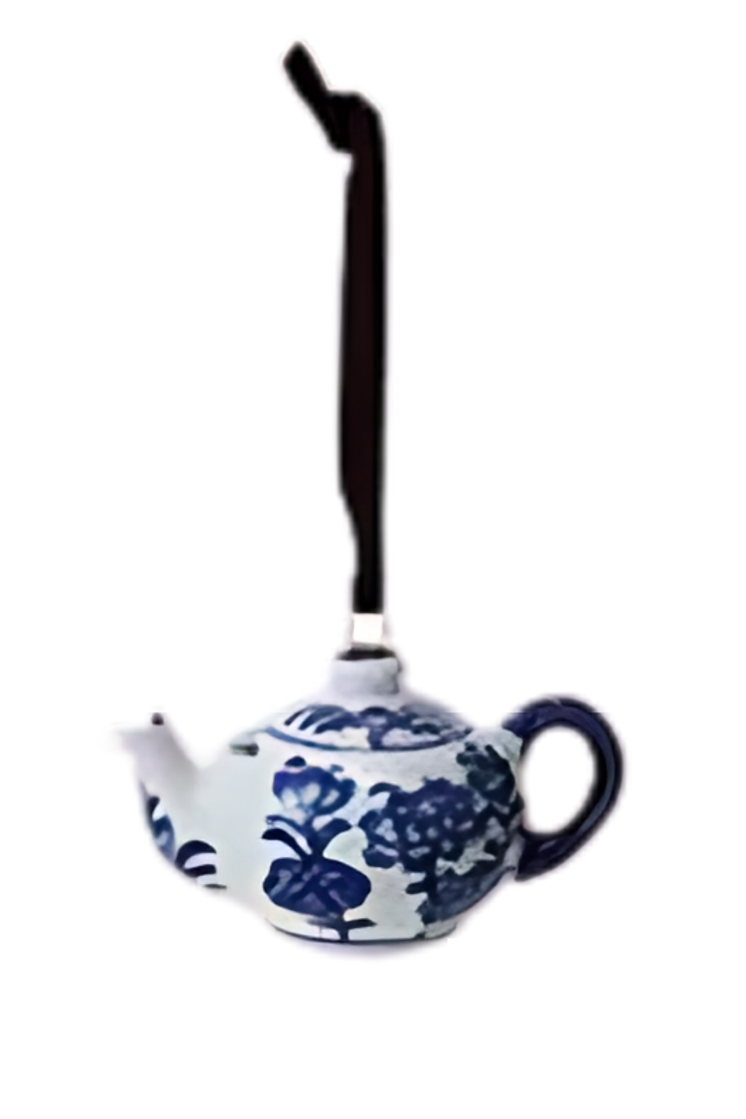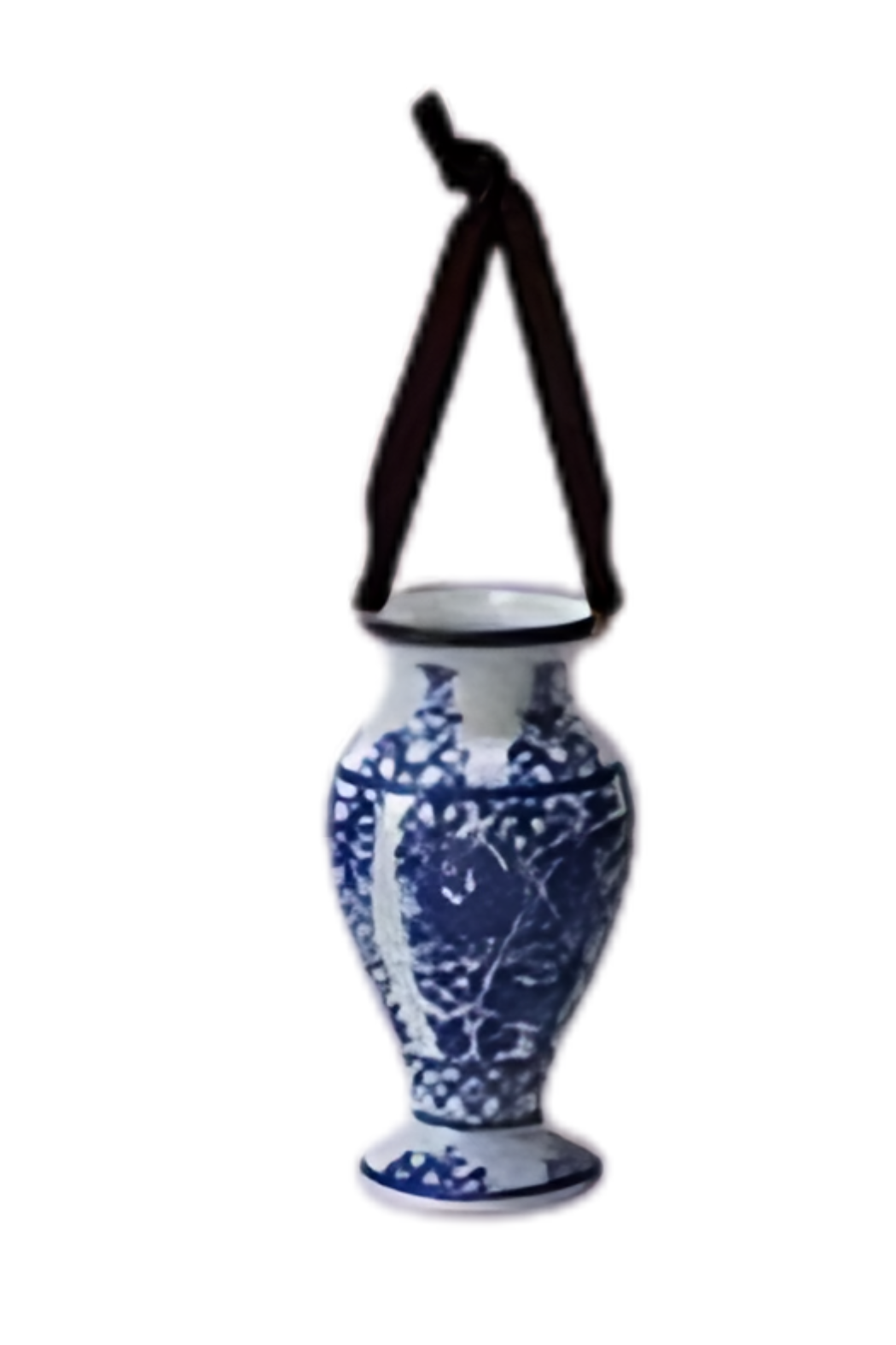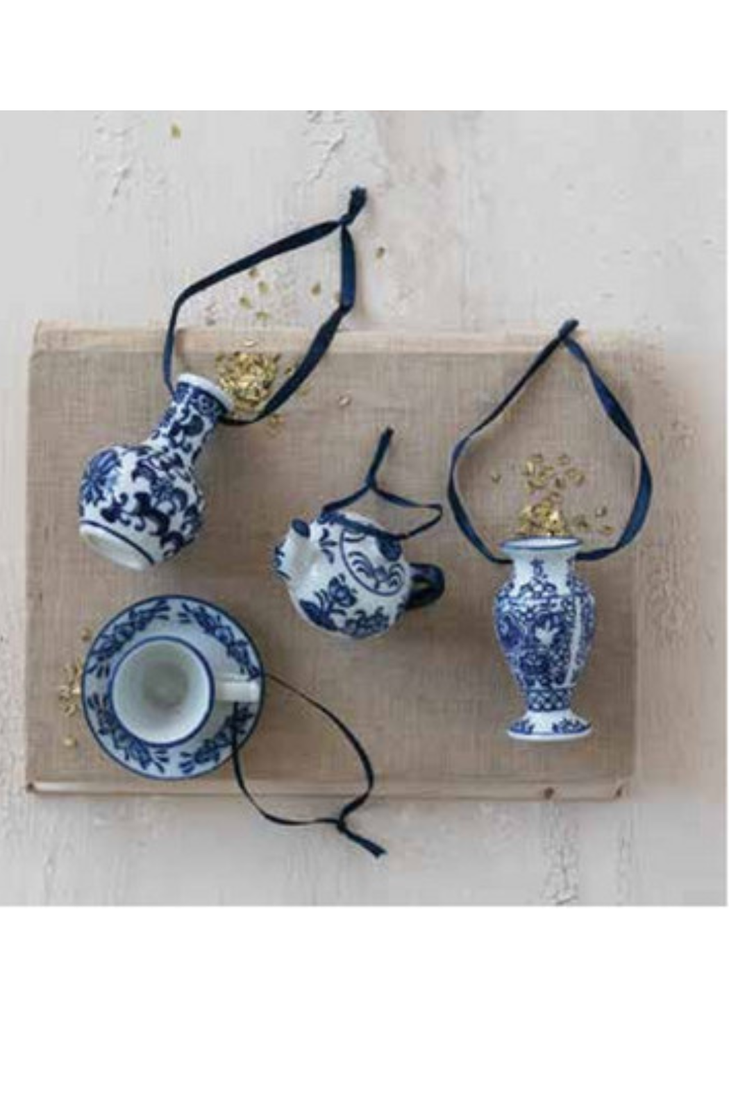 Stoneware Vase/Teapot/Teacup Ornament with Blue Ribbon