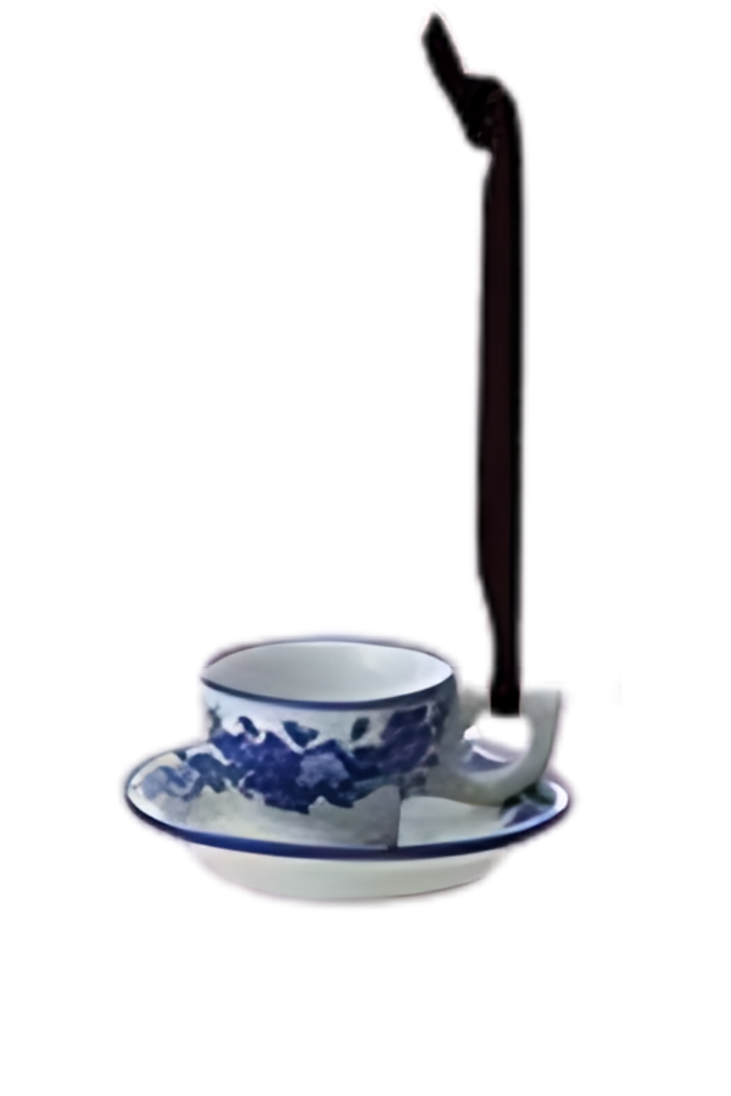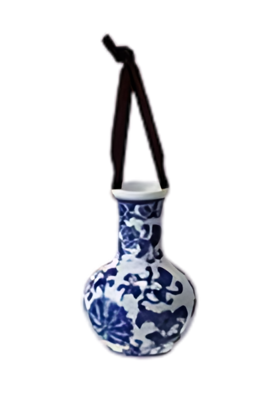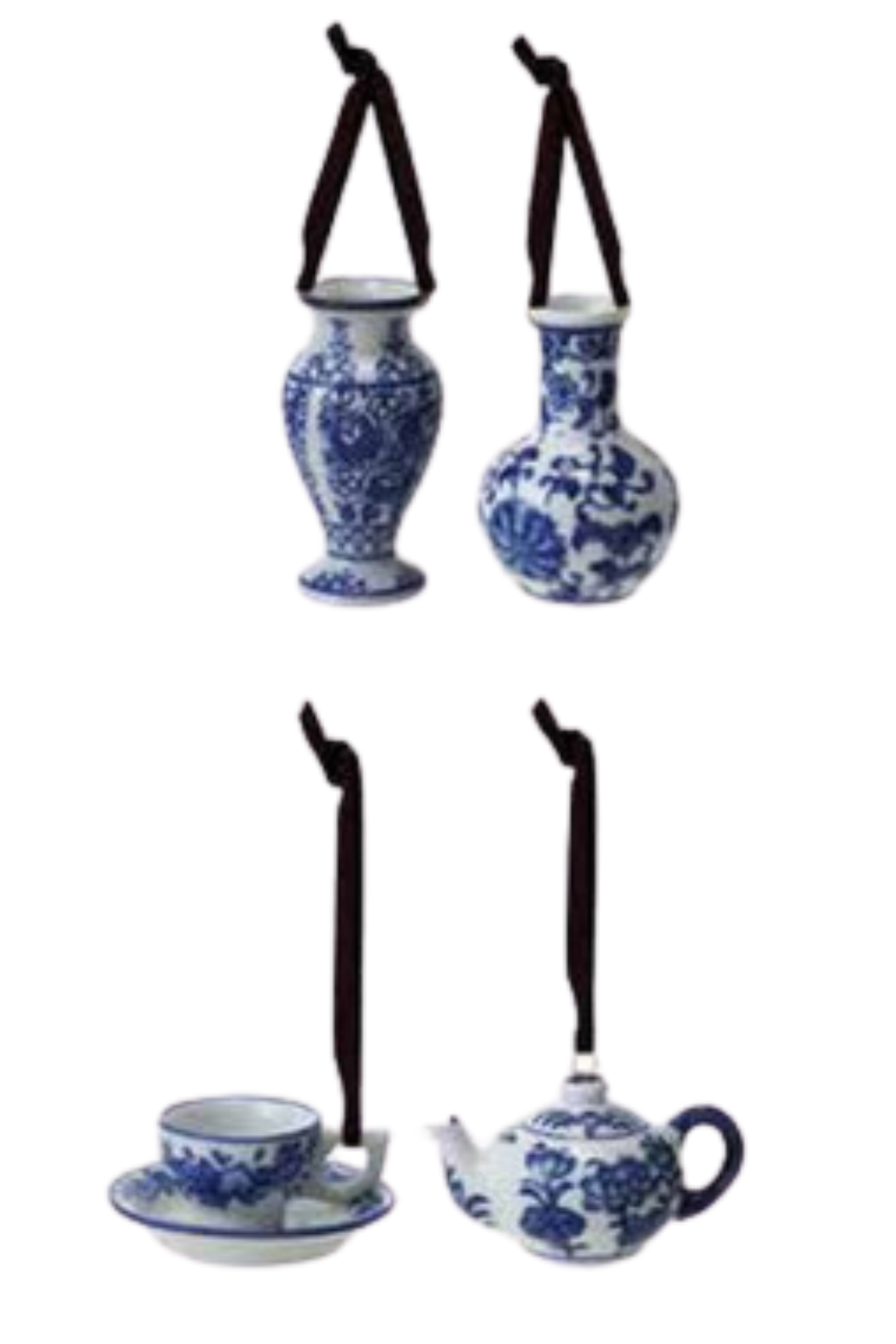 Stoneware Vase/Teapot/Teacup Ornament with Blue Ribbon
