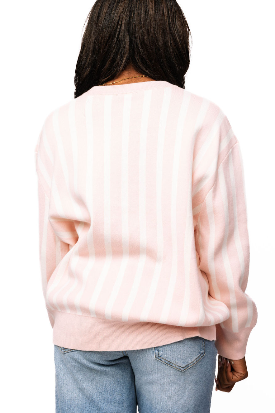 The Stripe Espresso Martini Sweater is a soft, striped knit with a relaxed silhouette and a classic crew neckline. Queen Of Sparkles designed this pastel sweater with vertical stripes, ribbed hem and cuffs for an easy, lived-in look. It’s perfect for casual days, cozying at home, or layered with jeans for weekend outings.