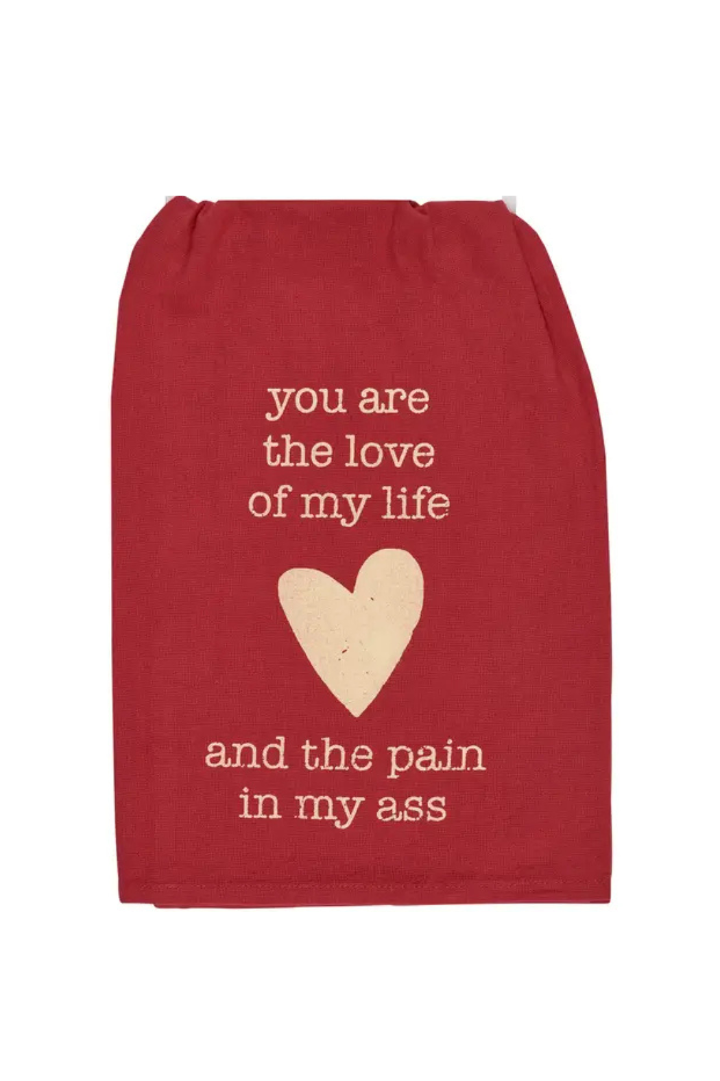 The Valentine Kitchen Towel is a red printed kitchen towel featuring cream text and a heart graphic for a playful, romantic touch. Made from absorbent cotton, it’s sized for everyday kitchen use and convenient dish-drying. A cheeky, giftable vibe that suits seasonal decor or a fun hostess present.