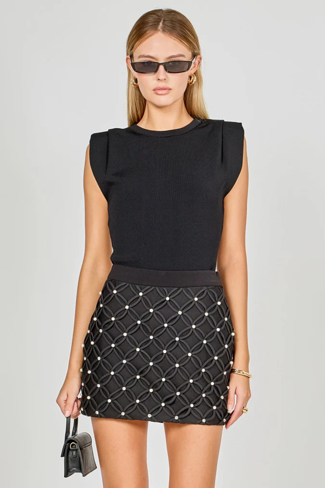 Rhinestone & Pearl Detail Mini Skirt