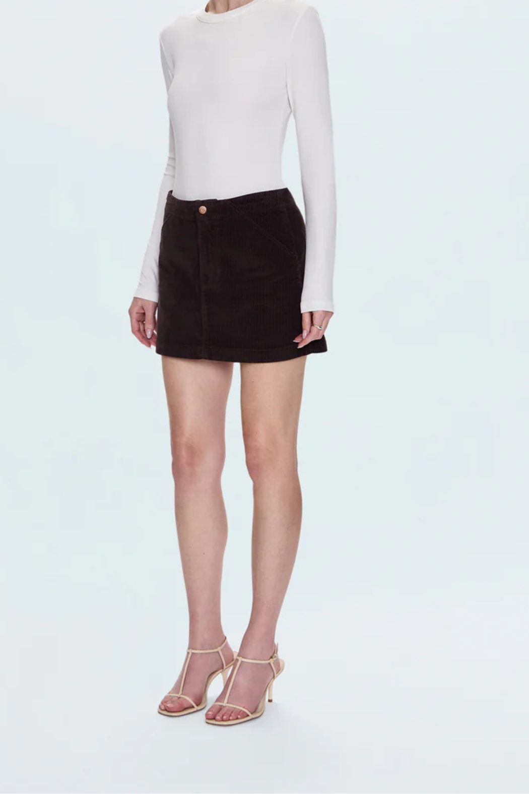 The mini that makes every outfit. Uma sits at a high rise with a classic mini silhouette. The flattering length hits at just the right spot while the high waist creates a sculpted silhouette that works with everything from tees to sweaters. Crafted from 100% cotton non-stretch fabric that holds its structured shape beautifully. Mocha brings rich, earthy sophistication in the warm brown that's defining this season.