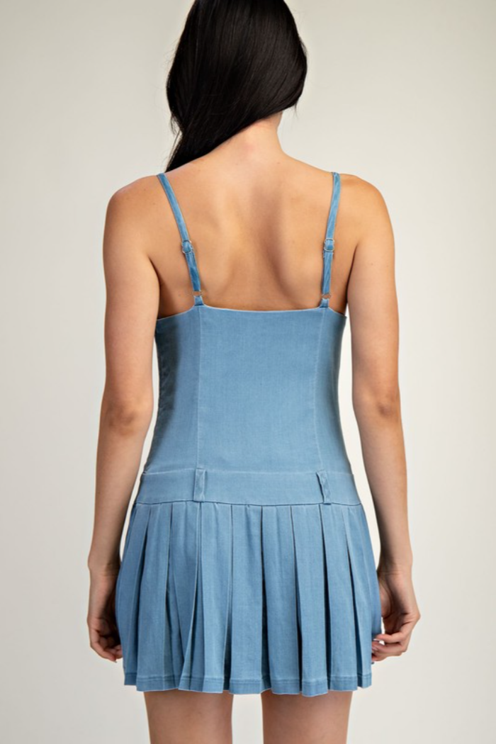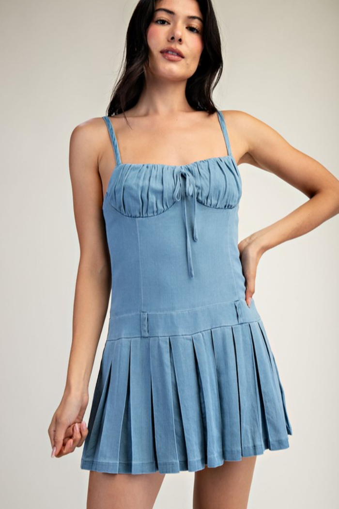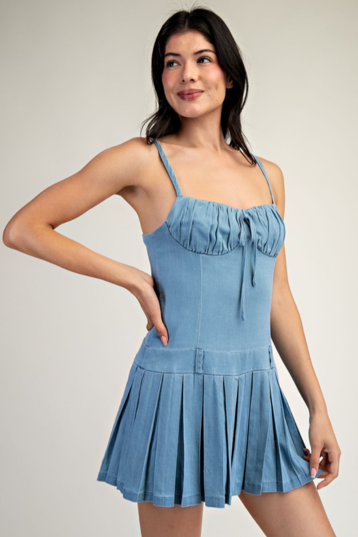 CAMI PLEATED STRETCH CHAMBRAY DRESS