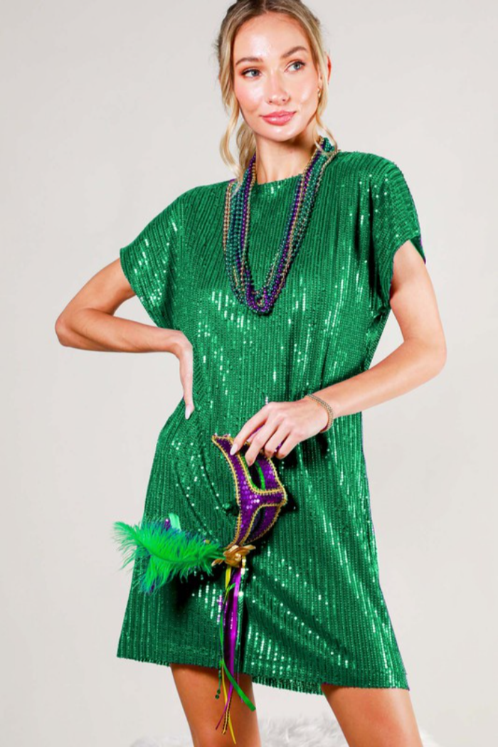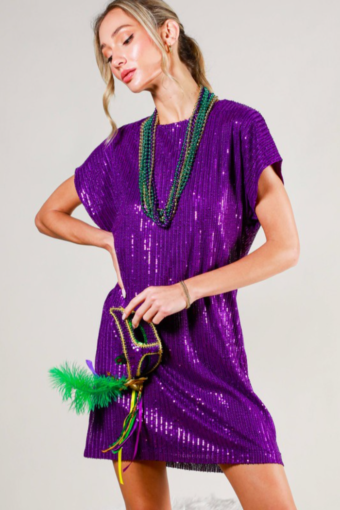 ROUND NECK SHORT SLEEVE SEQUIN MINI DRESS