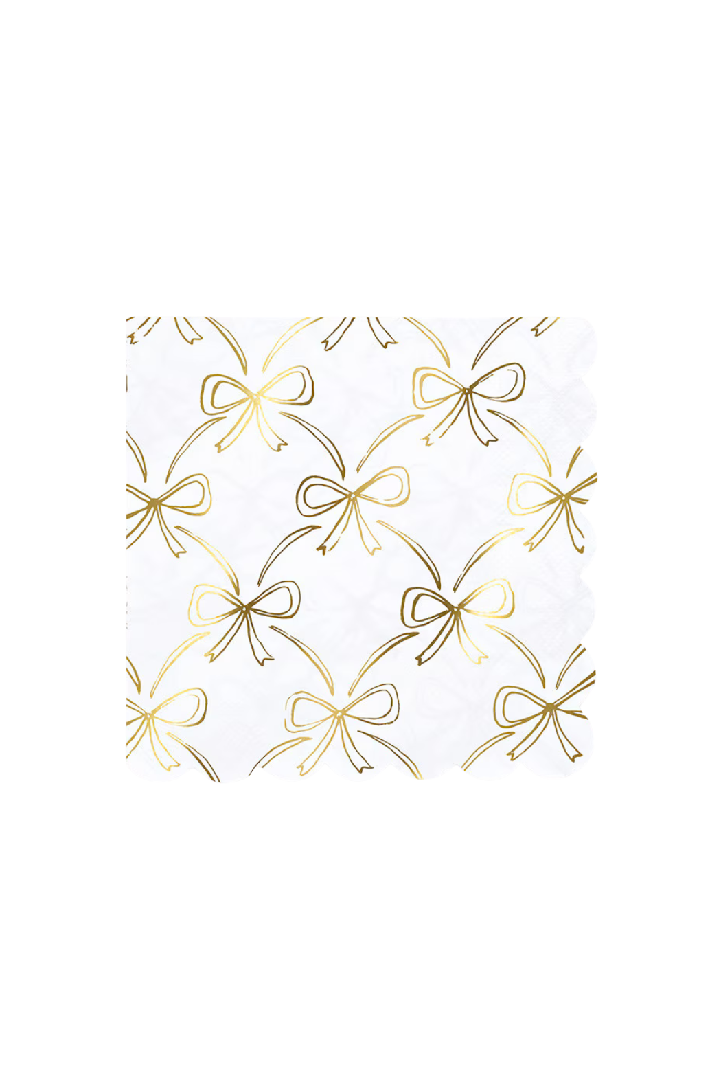 Add flair to your party with these elegant paper napkins. The combination of golden bows and a scalloped border is guaranteed to bring effortless sophistication to your table, making every setting shine. Disposable napkins have never been this chic and are perfect for the whole family to use. Ideal for Christmas, New Year, golden wedding anniversaries, bridal showers and special birthdays.