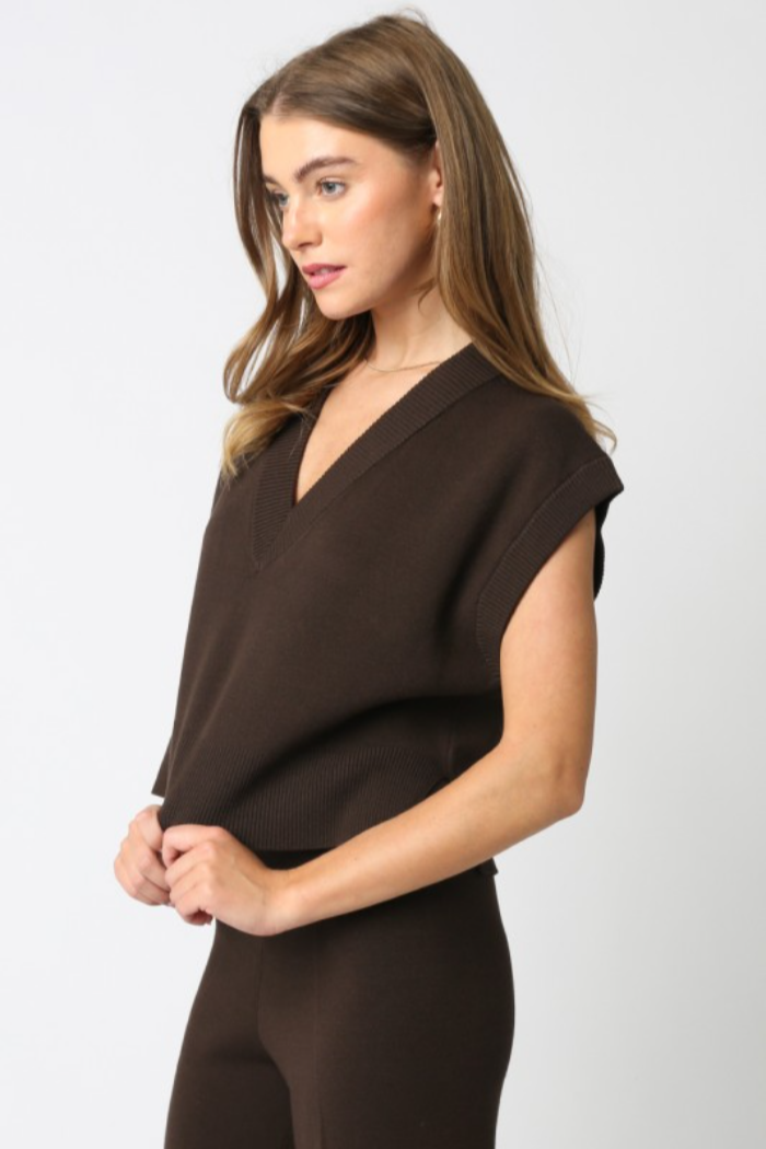 Our Stacy Knit Vest features a sleeveless and a V neckline.