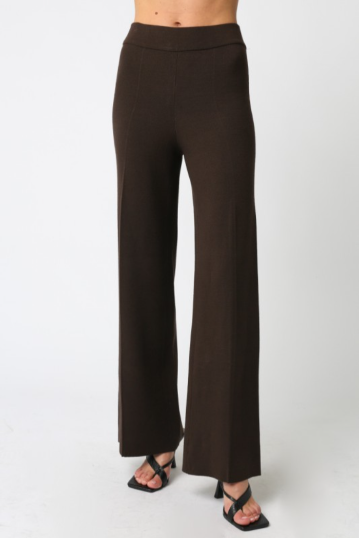 The Stacy Knit Pants feature a banded waistline and a straight leg.