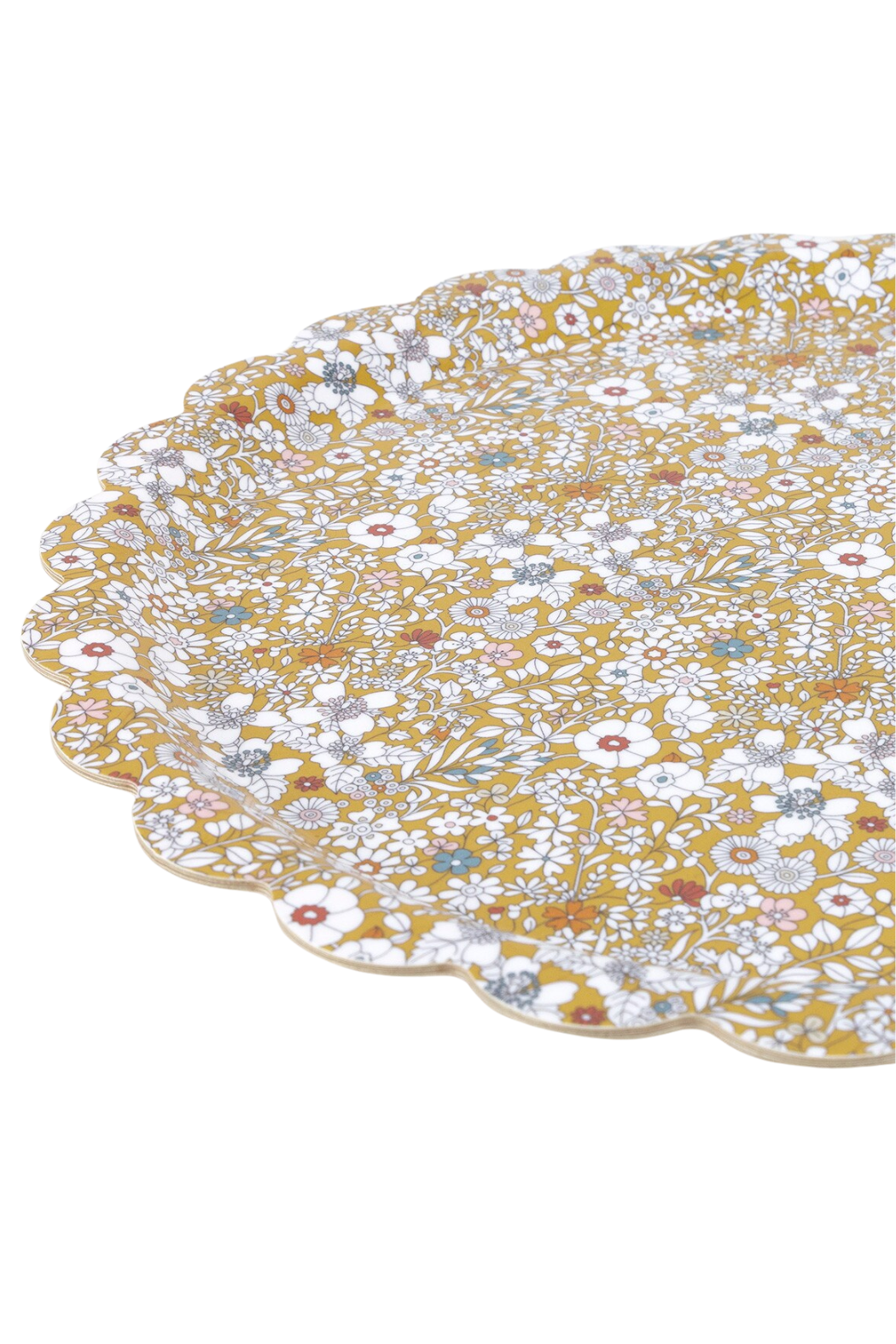 A floral Liberty print design is teamed with a scalloped edge for a sophisticated look.