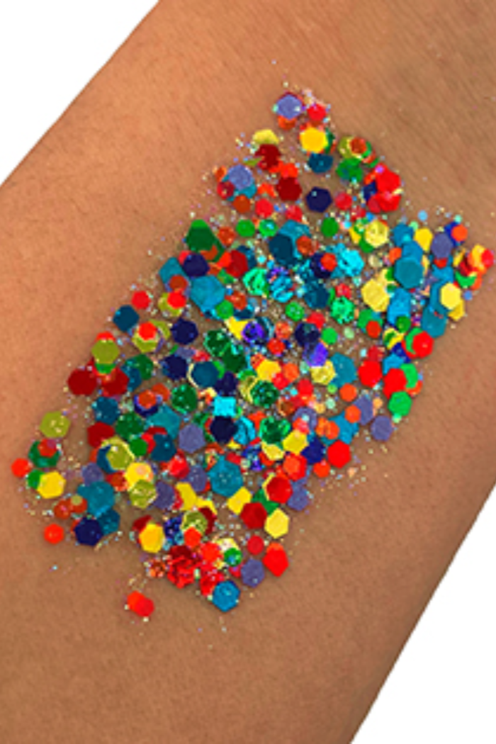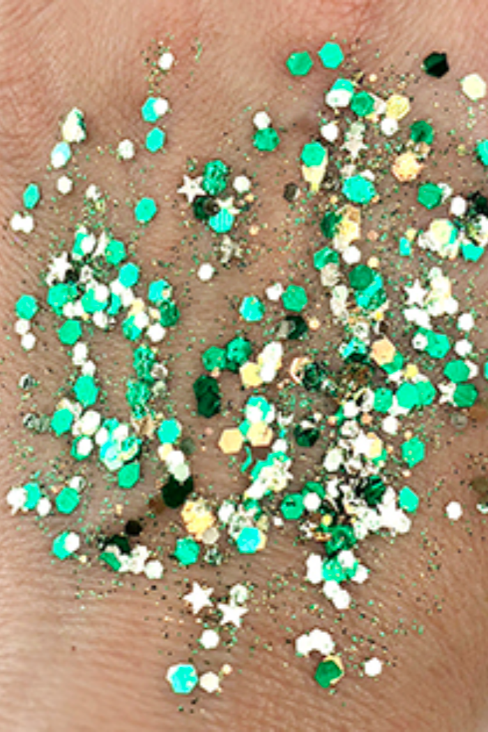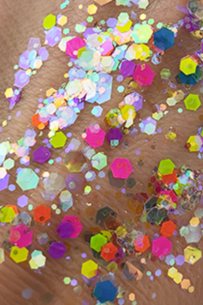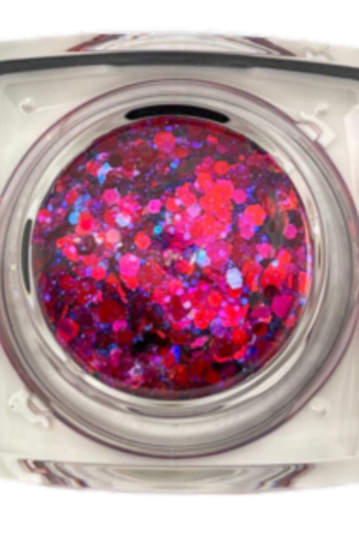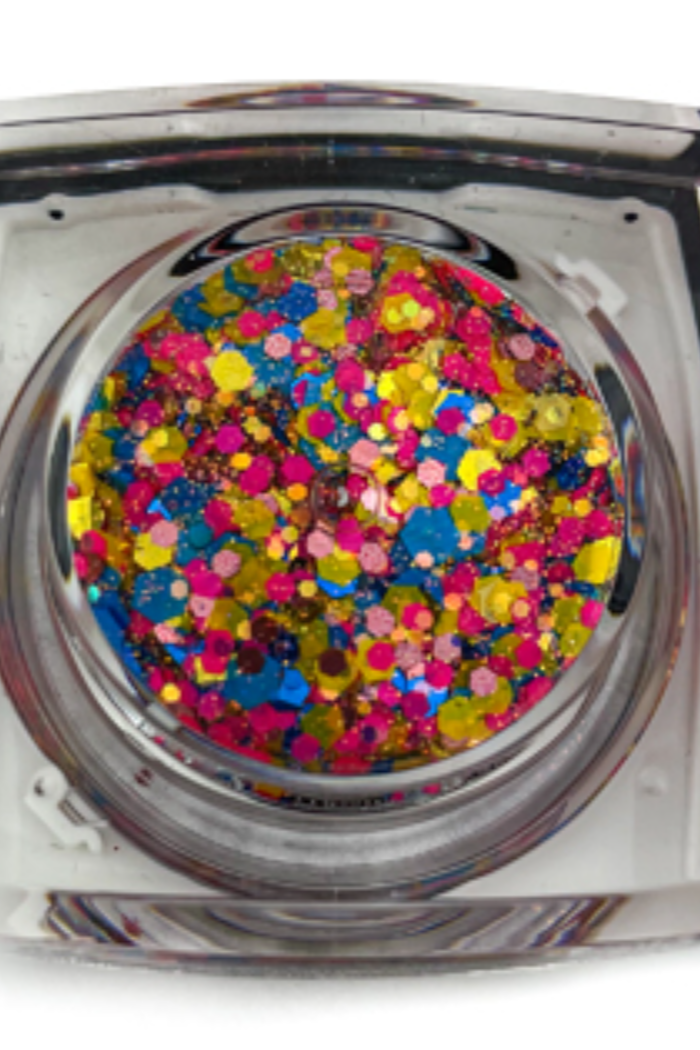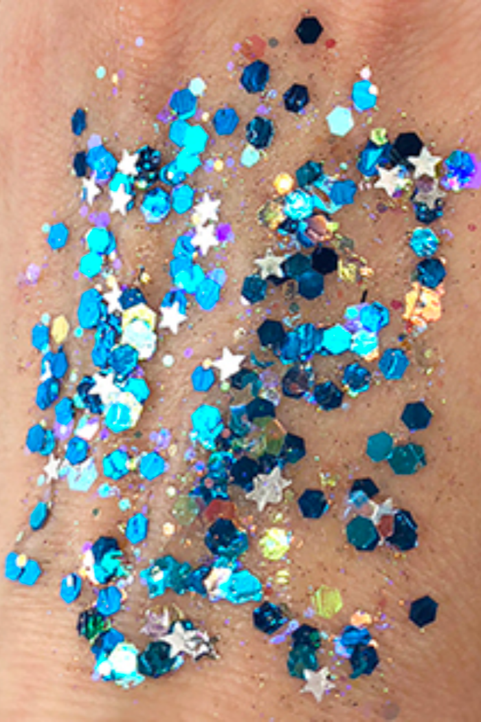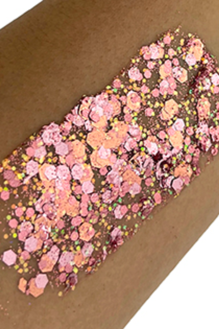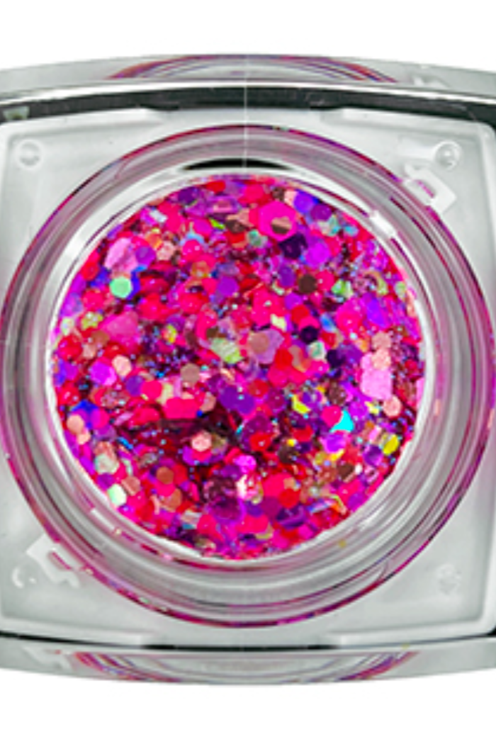 Elektra Cosmetics Bolt Balm is an intense blend of chunky and fine glitters custom mixed in an aloe vera gel base. It’s perfect for hair, body, face, or highlight but is NOT eyelid safe.