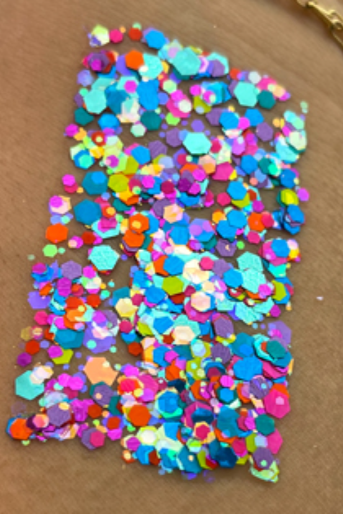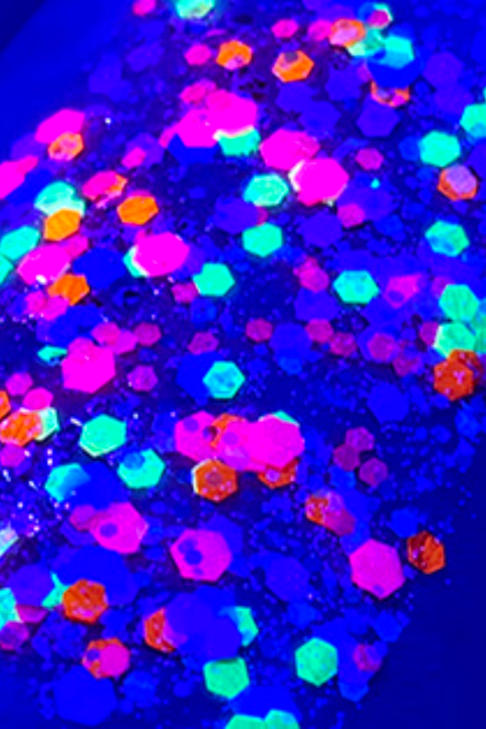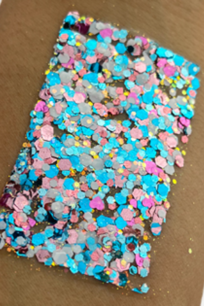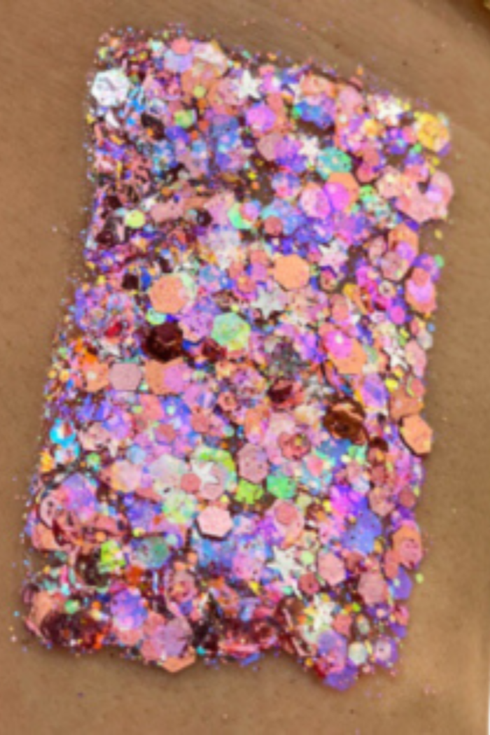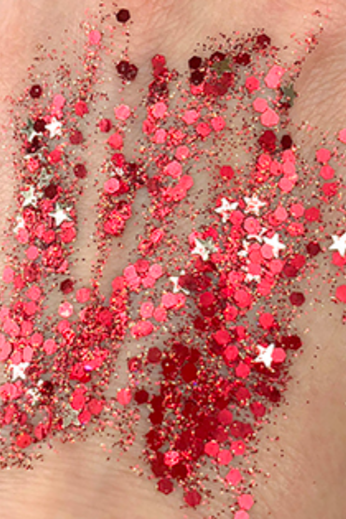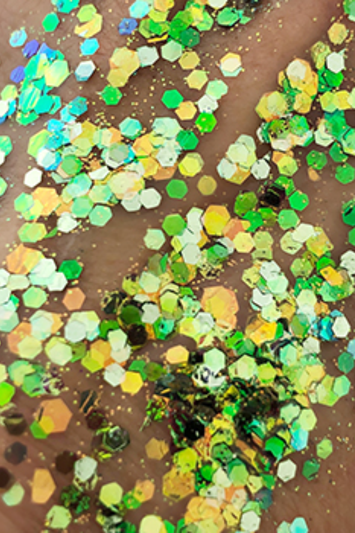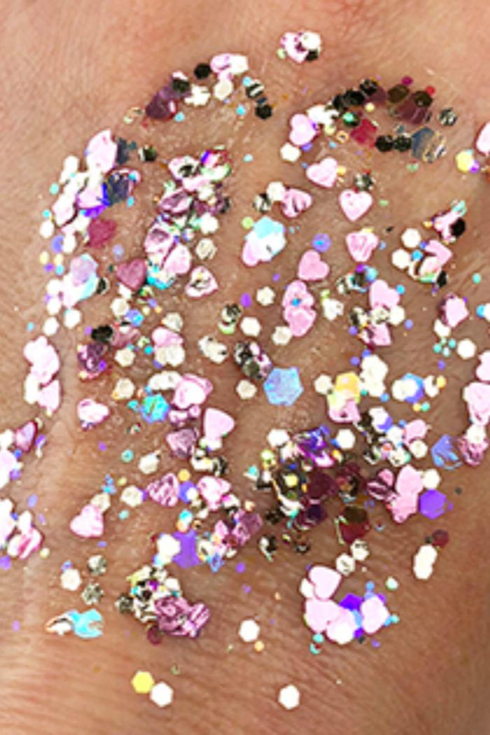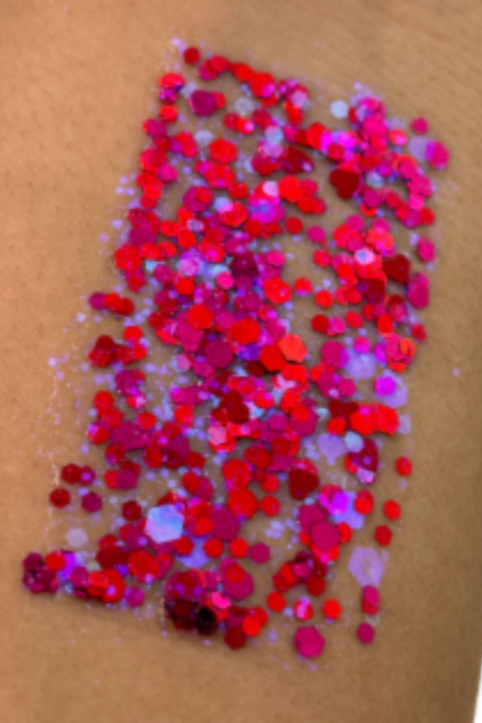 Elektra Cosmetics Bolt Balm is an intense blend of chunky and fine glitters custom mixed in an aloe vera gel base. It’s perfect for hair, body, face, or highlight but is NOT eyelid safe.