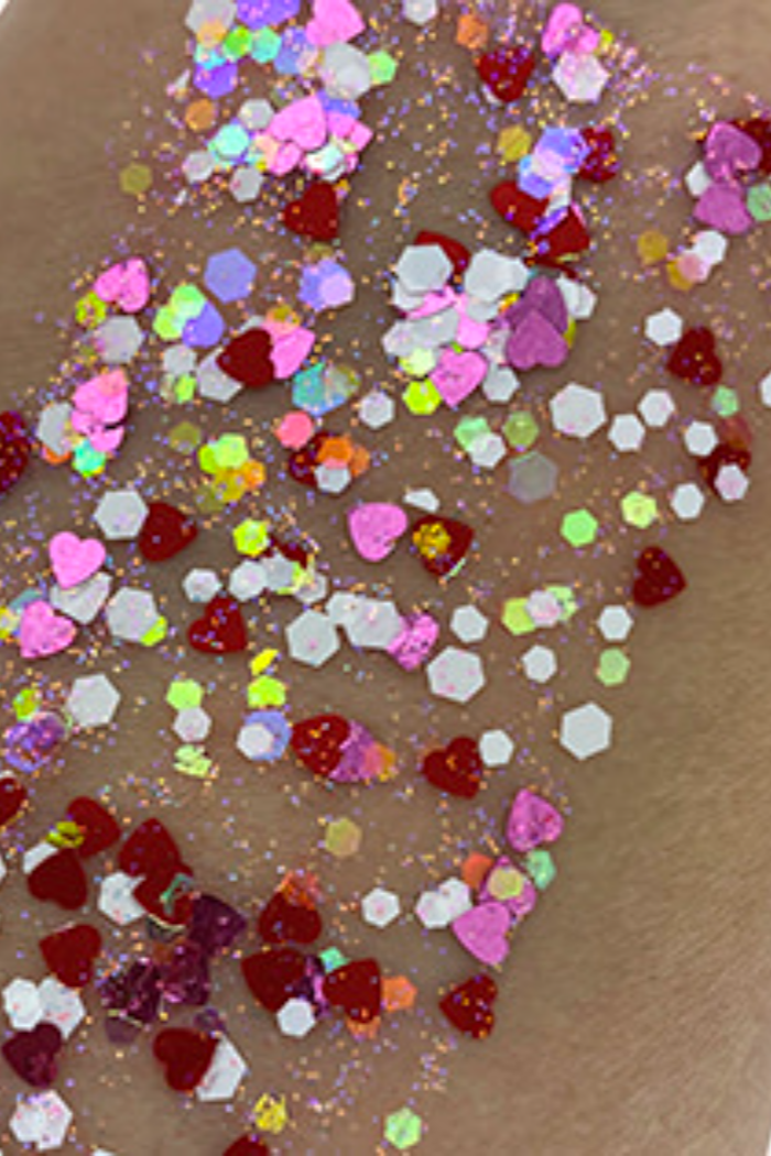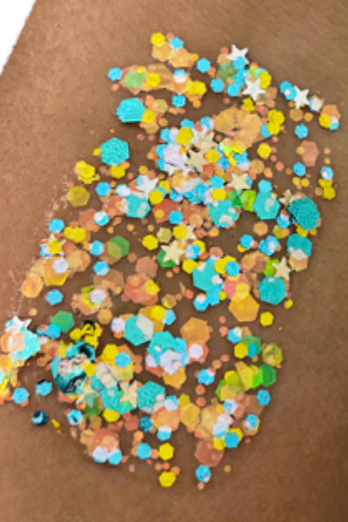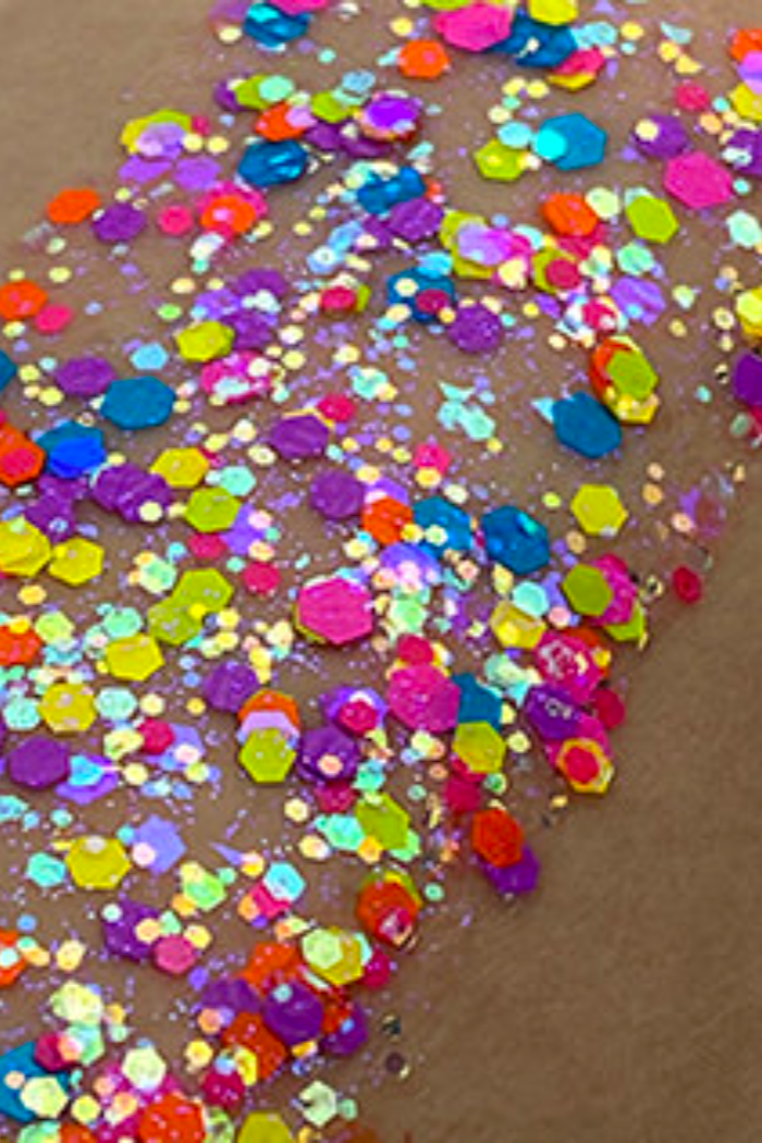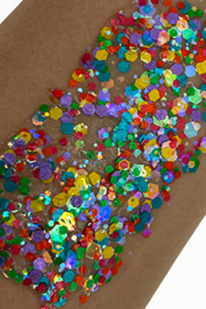 Bolt Balm is easy-on, easy-off glitter that goes on with a quick swipe of a finger or spatula applicator and comes off just as easily with a lint roller or tape.