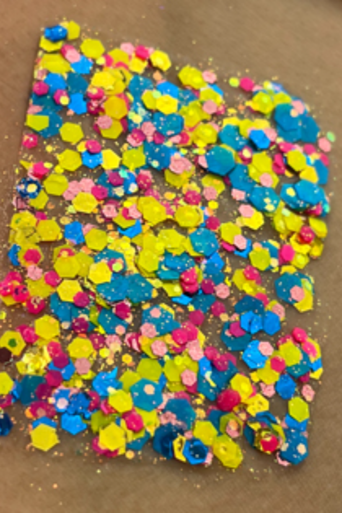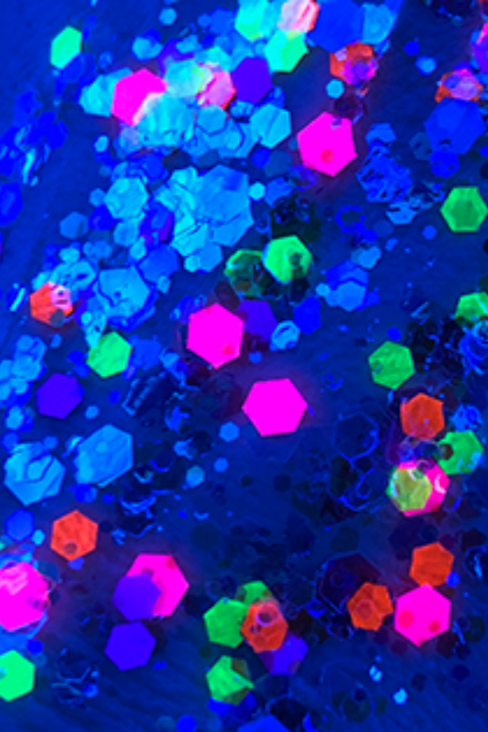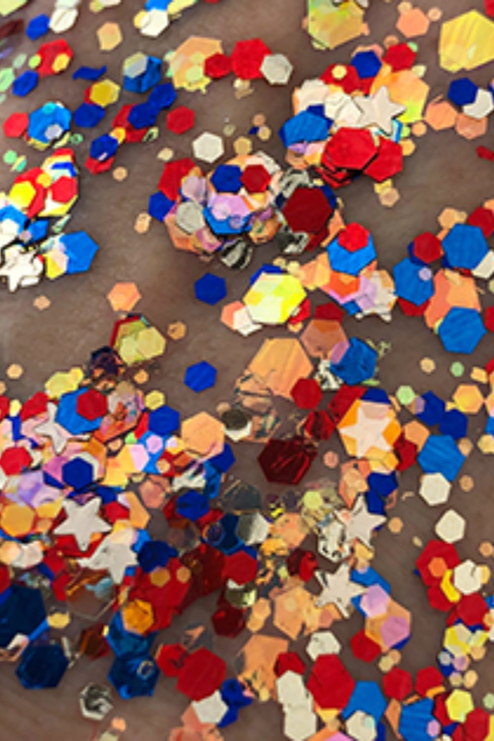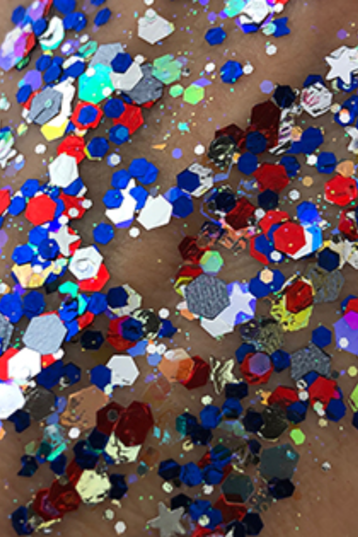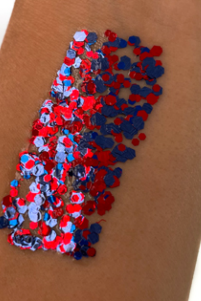 Bolt Balm is easy-on, easy-off glitter that goes on with a quick swipe of a finger or spatula applicator and comes off just as easily with a lint roller or tape.