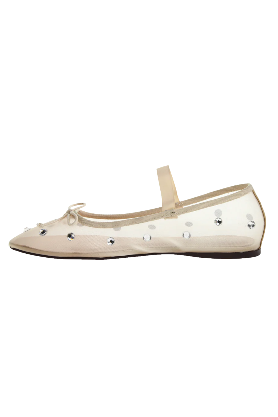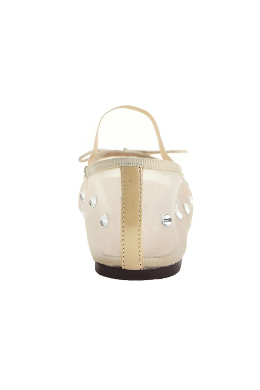 Tread lightly and carry a big vibe with the Adette Stone-Mesh Ballet Flat. Crafted with a delicate yet daring mesh construction, each step twinkles with the embedded clear crystal stones. They say details make the difference, and with their easy slip-on design complemented by a charming Mary Jane strap, these shoes declare you’re not just any girl; you’re THAT girl.