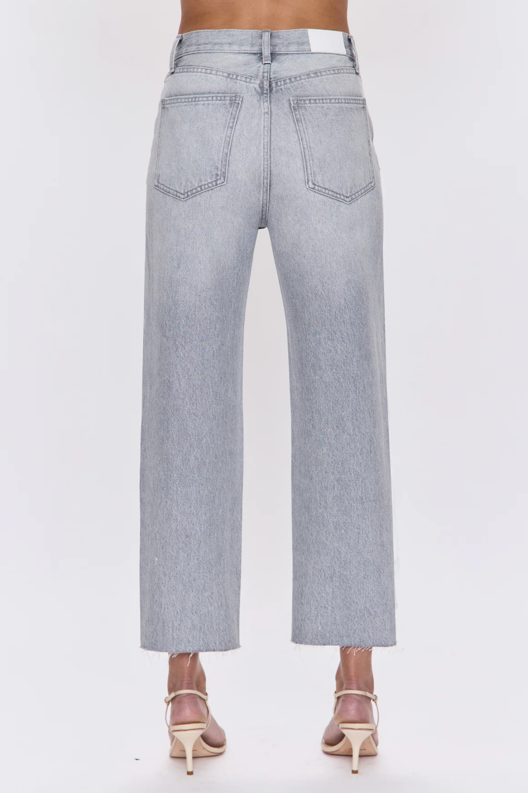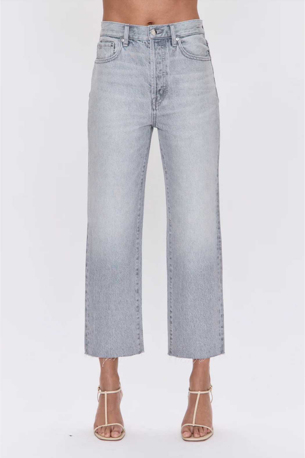 The crop that commands attention. Cassie Crop sits confidently at a super high rise, defining your waist with architectural precision. The composed straight leg creates an elongated silhouette before hitting at the perfect cropped length, finished with a 26" inseam. Crafted from rigid non-stretch denim in Enigma, a light wash.