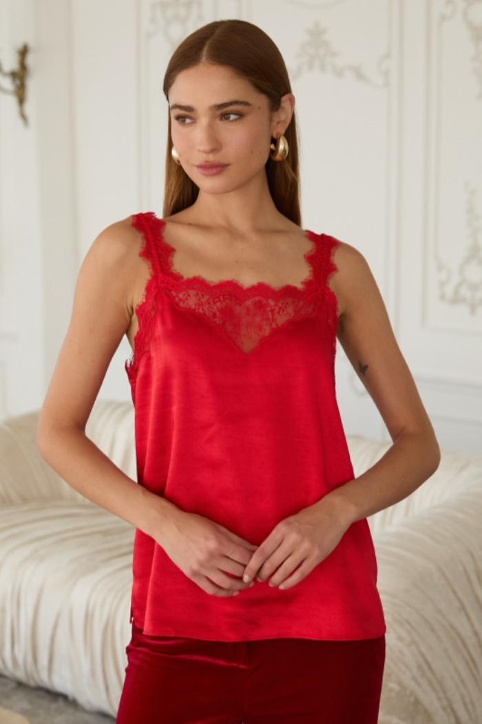 The lace detailing adds a touch of femininity, making it perfect for layering under blazers or pairing with sleek bottoms for a chic statement.