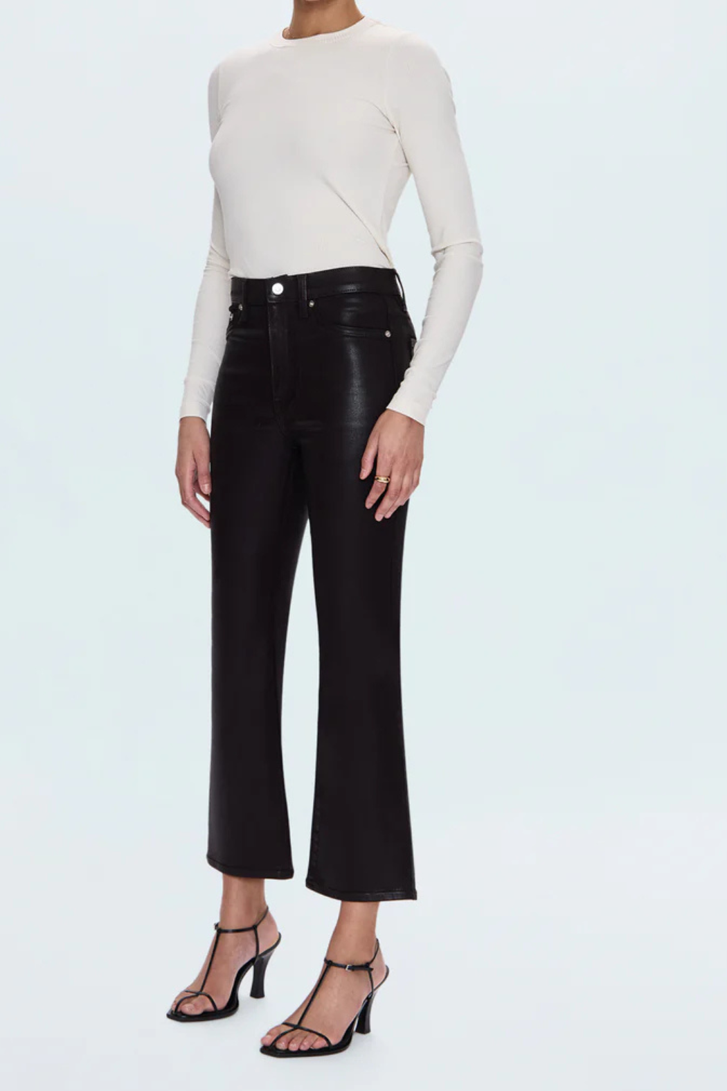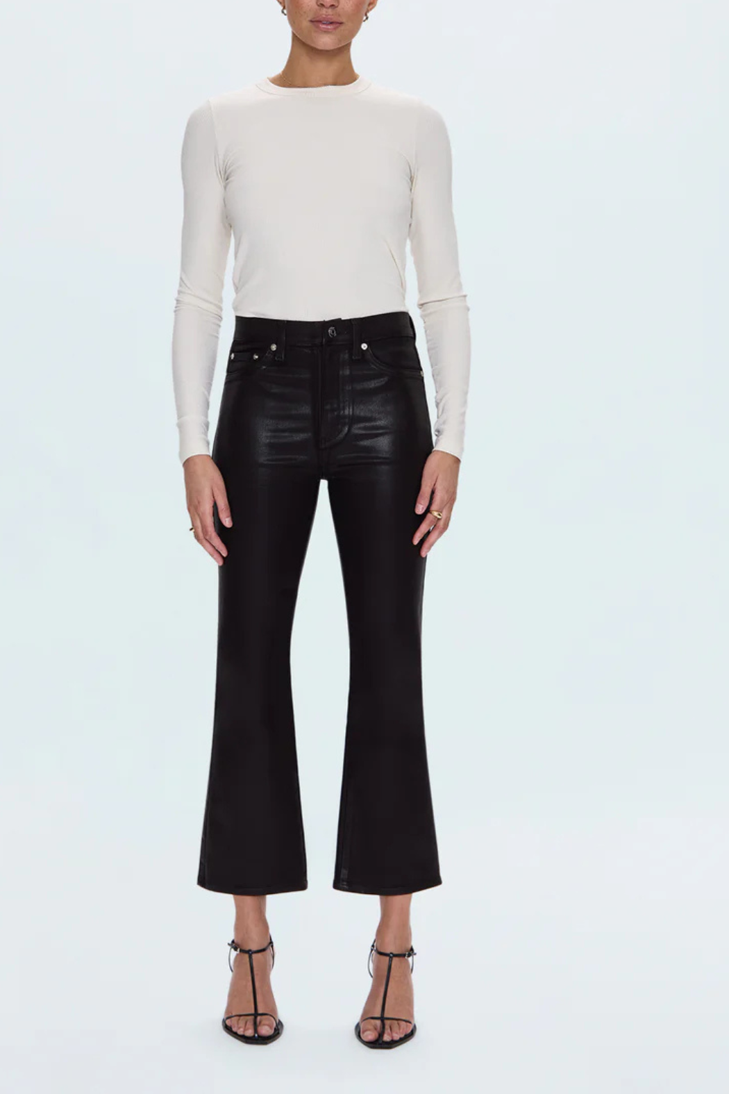 The bootcut you'll reach for again and again. Lennon sits at a high rise with a slim-to-the-body fit that hugs from hips to knee before flaring at the calf for perfect proportional effect. The cropped ankle bootcut creates a flattering silhouette that works with any shoe. Crafted from high stretch fabric in Coated Mocha, a rich brown that's defining this season. The luxurious coated texture elevates every look with sophisticated appeal.