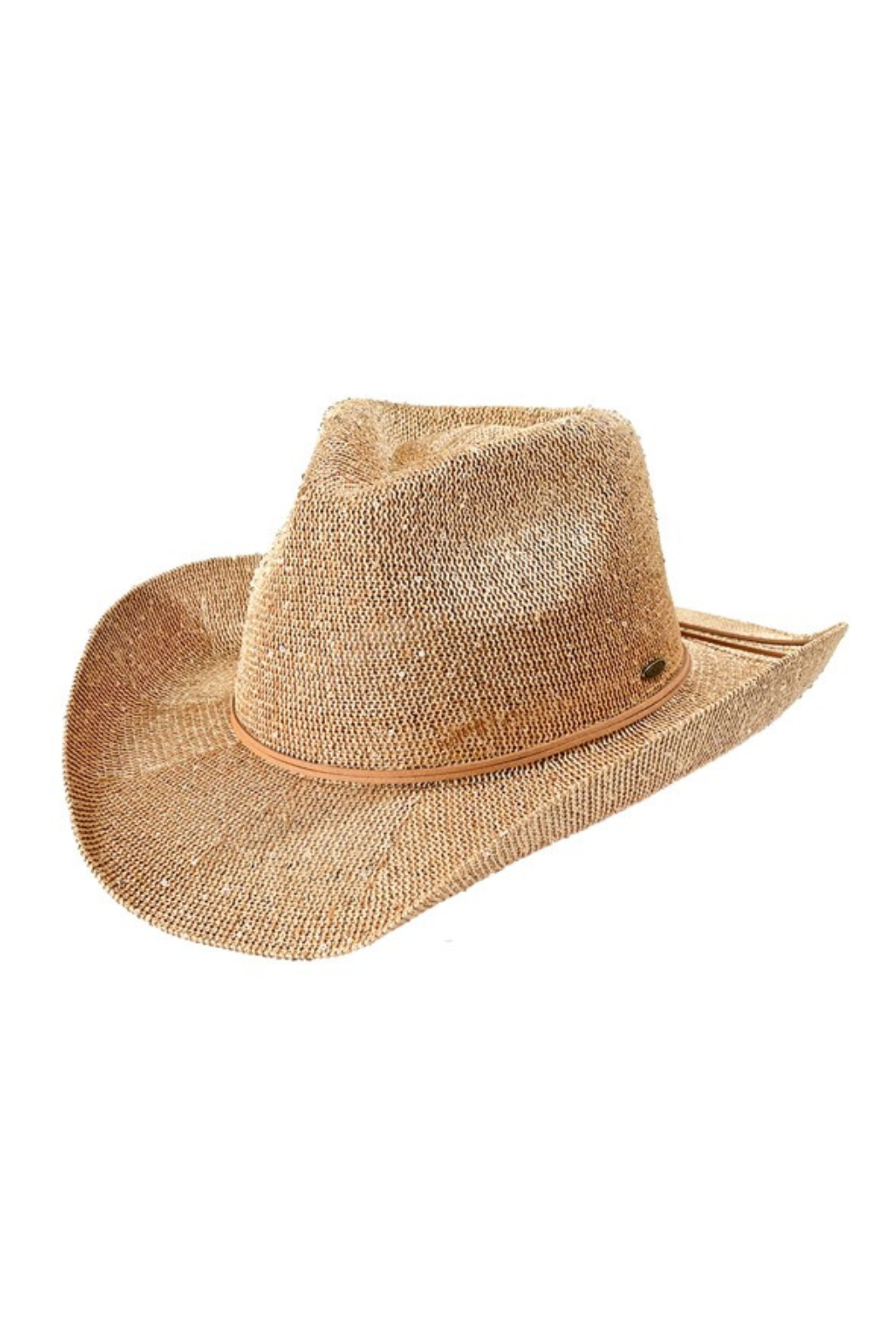SEQUIN COWBOY HAT WITH SUEDE STRING TRIM BAND
