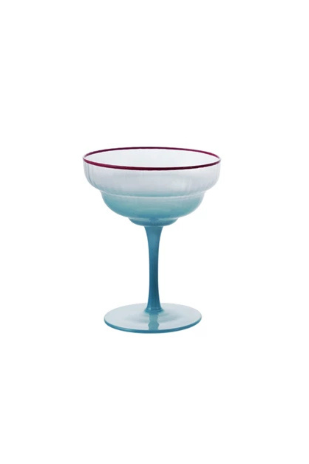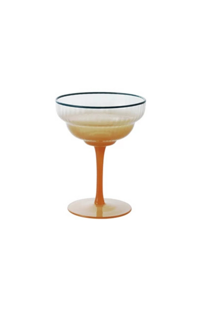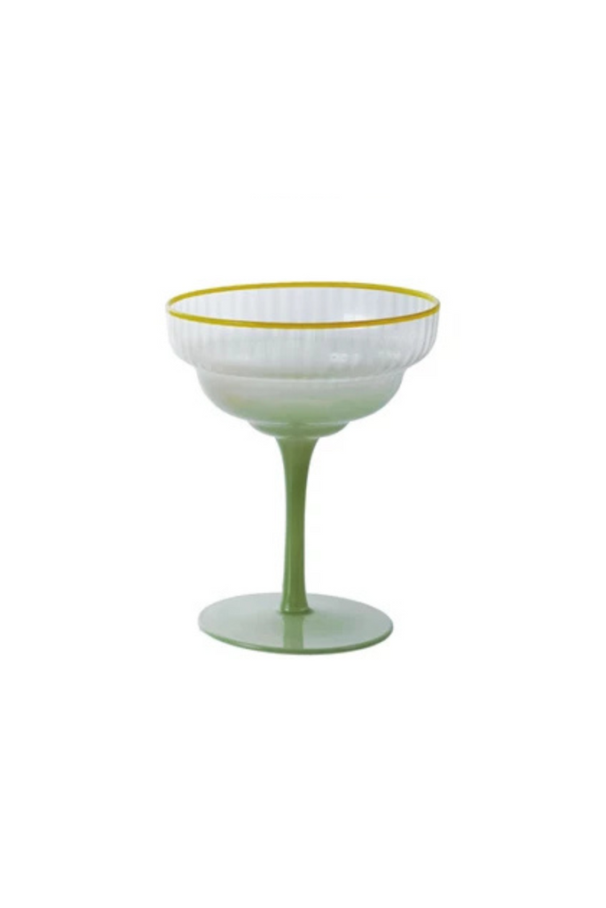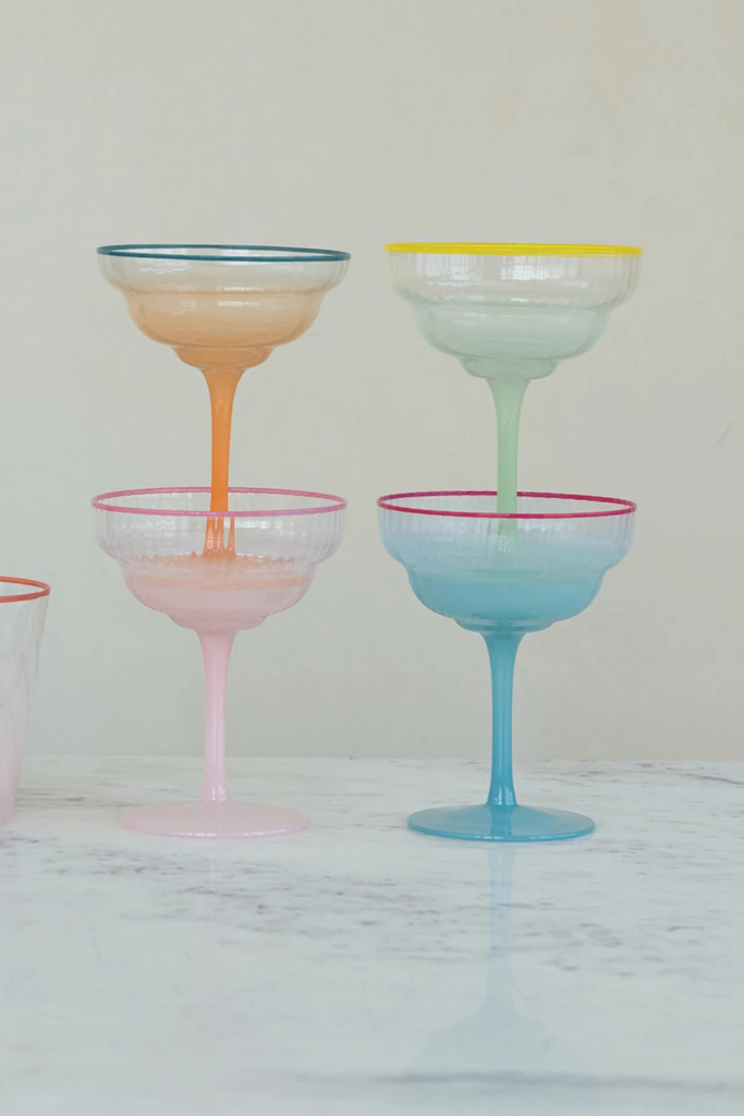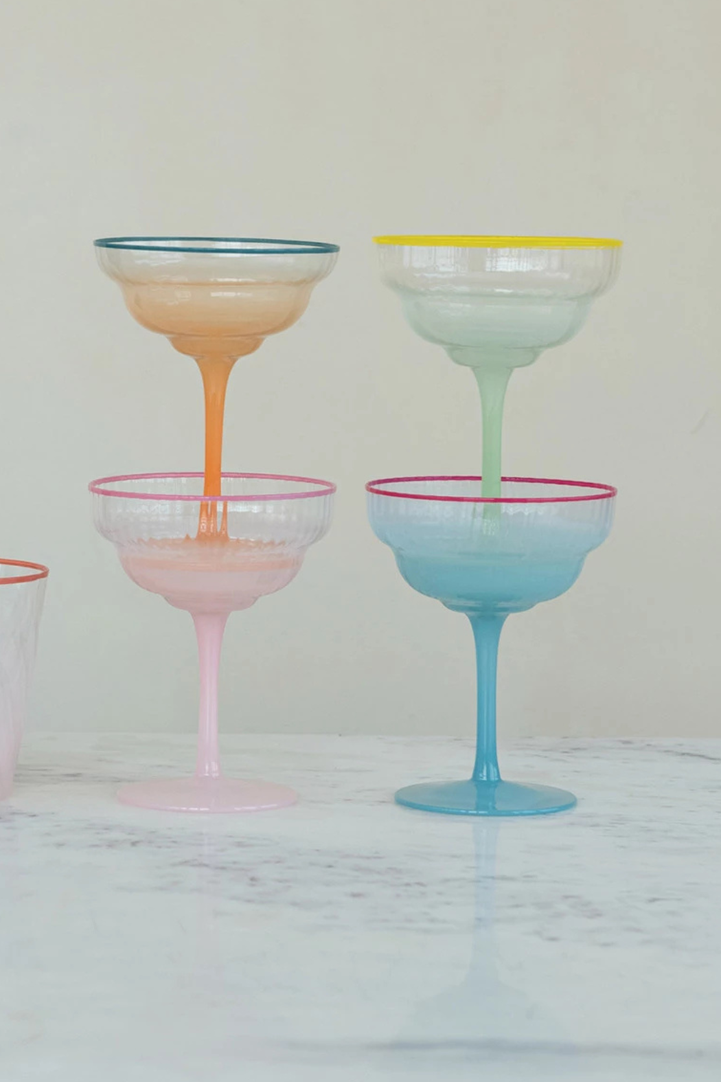 4" Round x 5-1/4"H 4 oz. Fluted Stemmed Coupe Glass w/ Colored Rim, 4 Ombre Colors