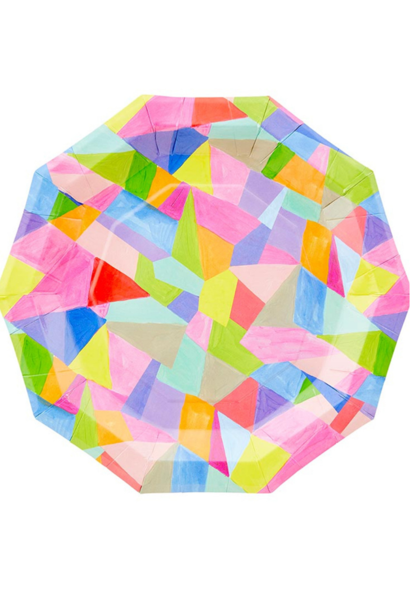 Brighten up any celebration with these colorful geo printed paper plates!