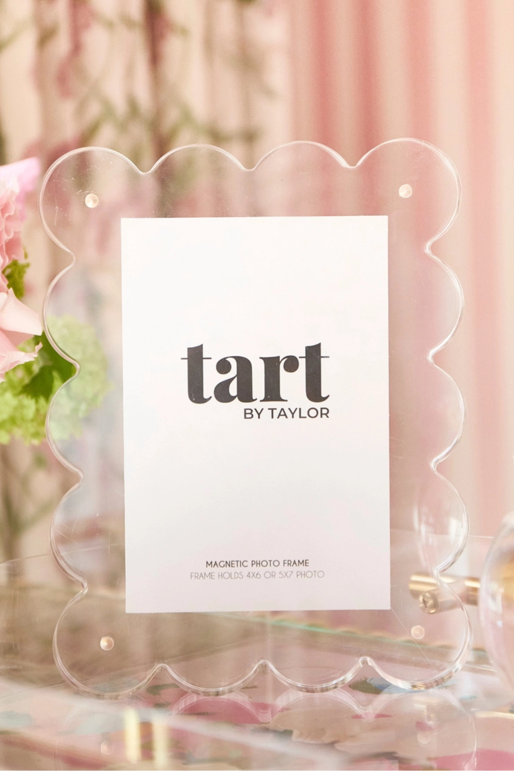 Display your favorite photos in style with this clear acrylic picture frame! It features a magnetic border to securely hold your cherished pictures as well as adding a stylish touch. Perfect for giving your home a fun and unique look! 🤩