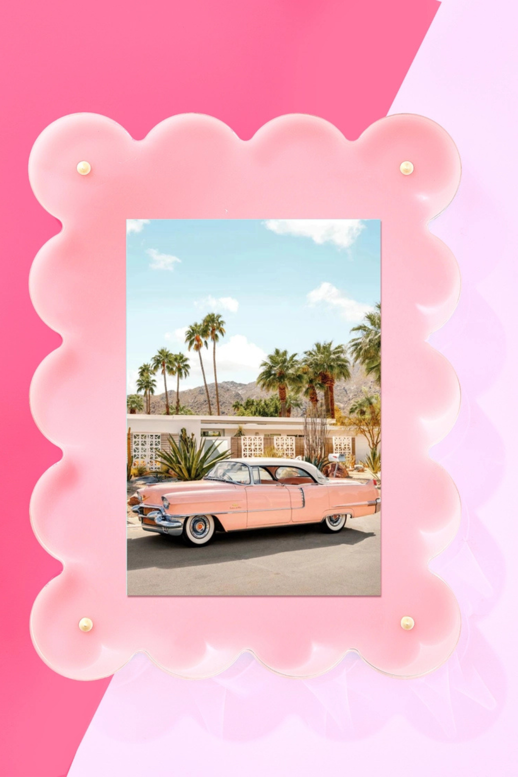 Display your favorite photos in style with this light pink acrylic picture frame! It features a magnetic border to securely hold your cherished pictures as well as adding a stylish touch. Perfect for giving your home a fun and unique look! 🤩