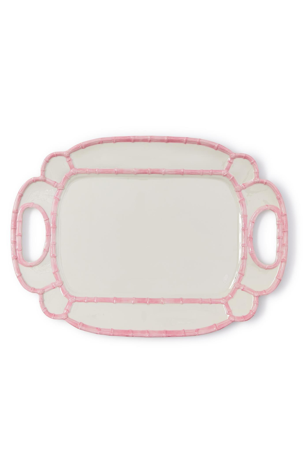 Pink Bamboo Touch 14 1/2" x 20" Platter with Bamboo Rim Design
