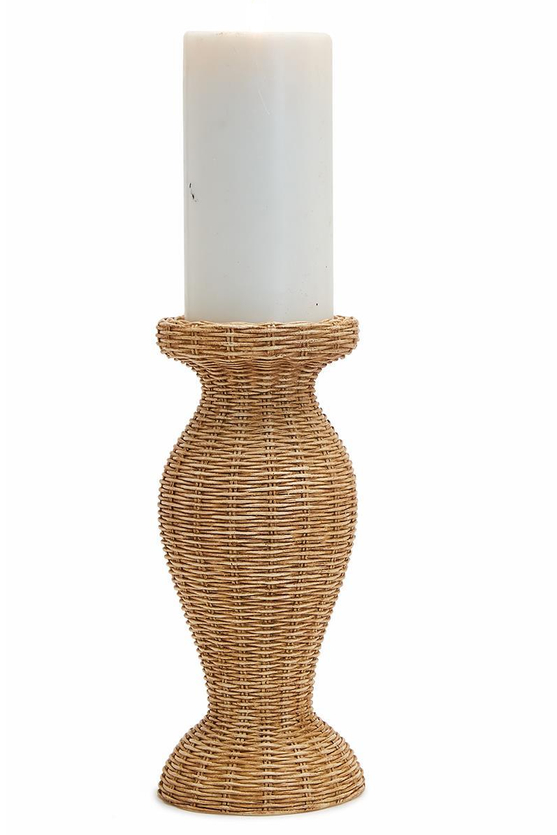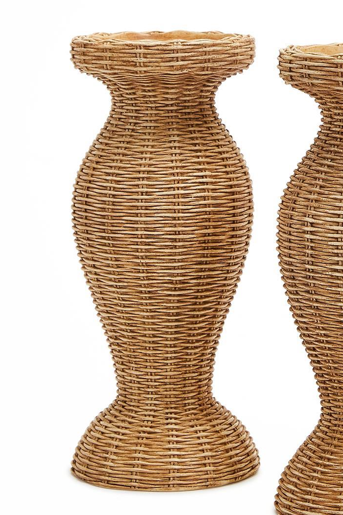 Bring the look of wicker into your living space. These pedestals are rich in color and texture. Ideal to showcase candles or objects on shelves, desks, coffee tables, and all areas in the home.