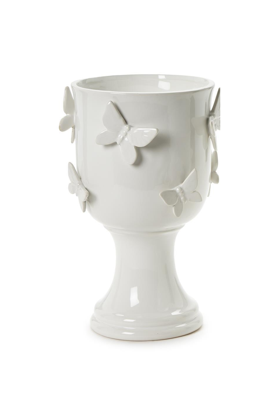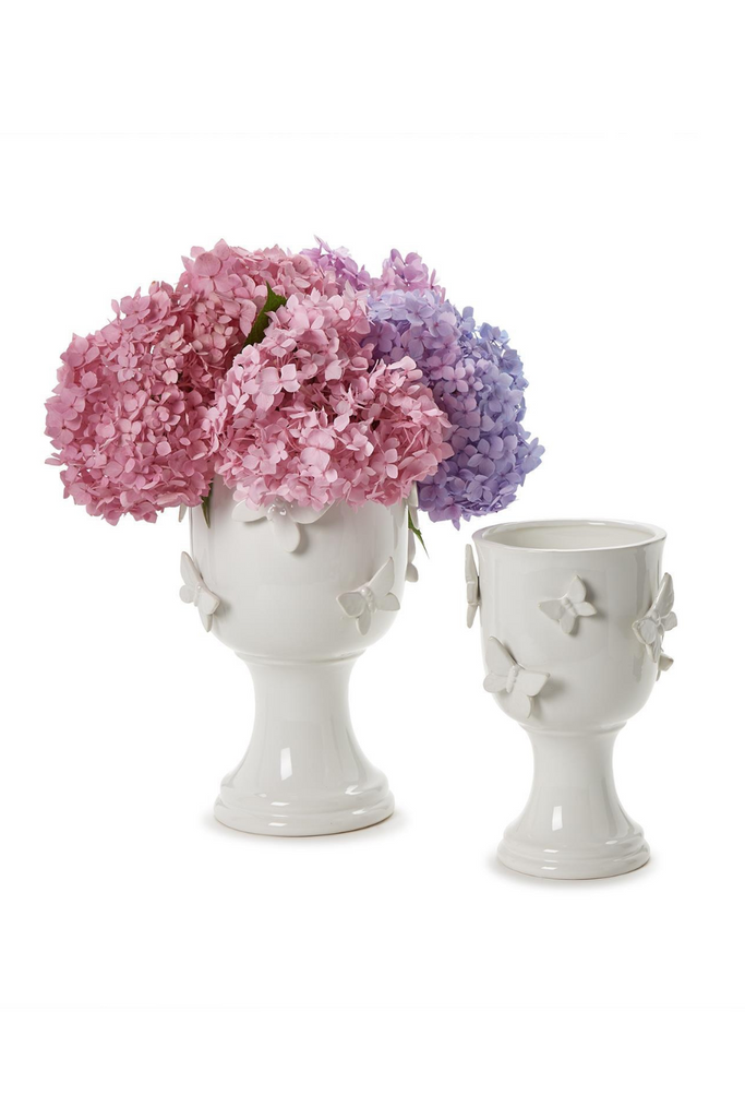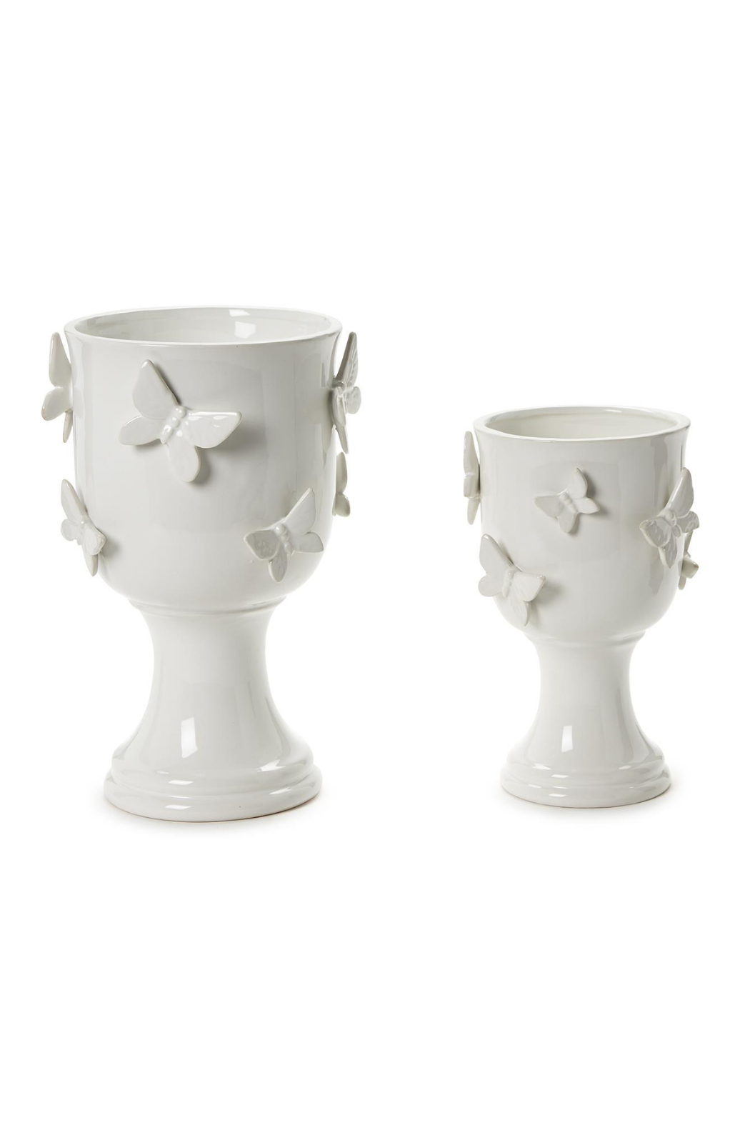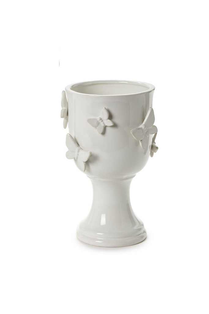 Transform your living space into a whimsical garden with these Butterfly Pedestal Cachepots. Crafted from ceramic, these exquisite vases feature sculpted butterflies for a touch of natural beauty. They are the perfect addition to any mantel or side table. Handmade with care, these cachepots are not just vases; they are a work of art.