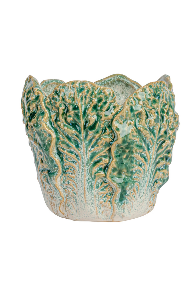 This adorable planter is made of high-quality stoneware that has an embossed cabbage design that creates a textured and dimensional look.