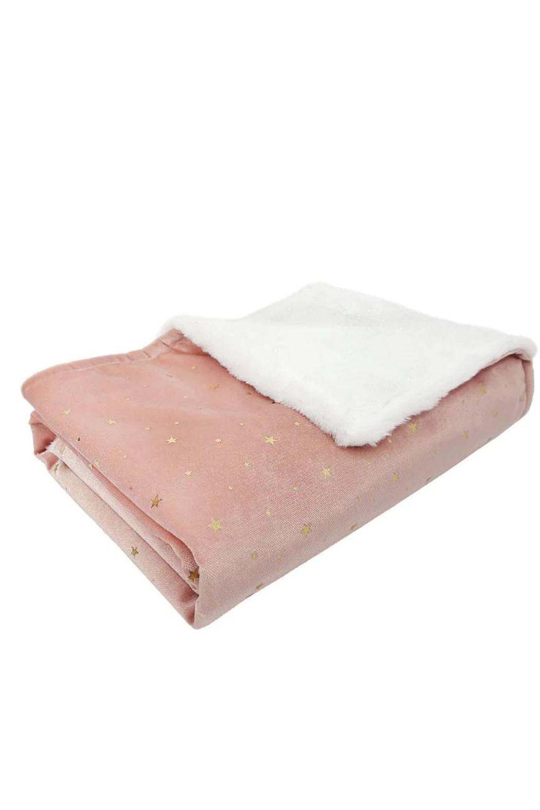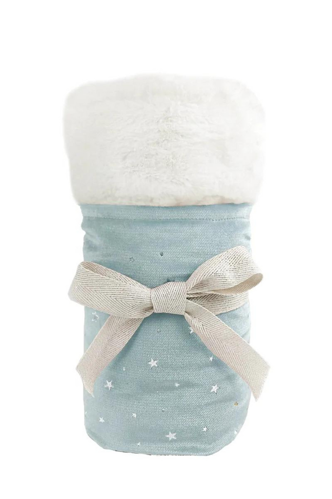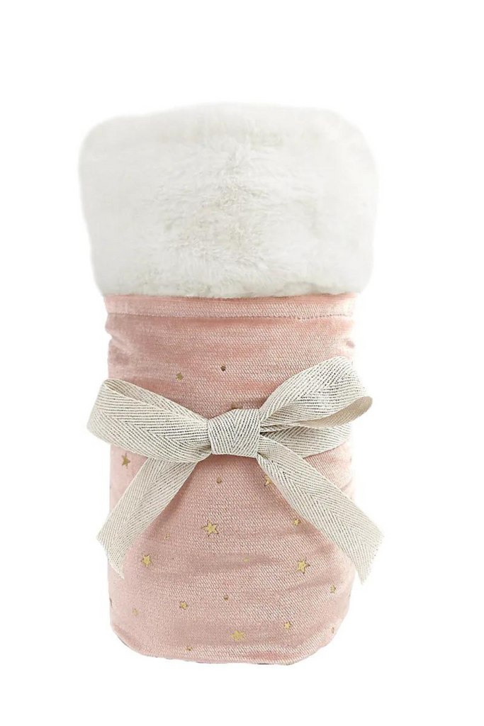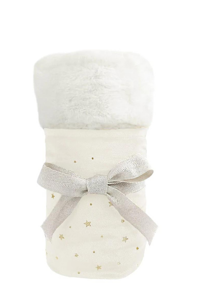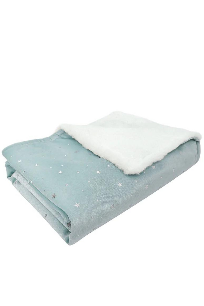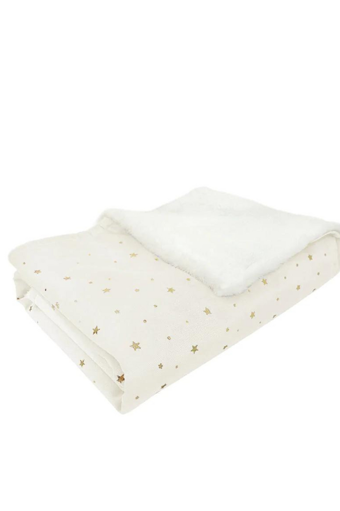 MON AMI Celestial velvet and faux fur blankets are heavenly. Backed with our signature lush fabric, the softness is unmatched. Exterior is velvet printed with a foil stars, this blanket is perfect all year round.