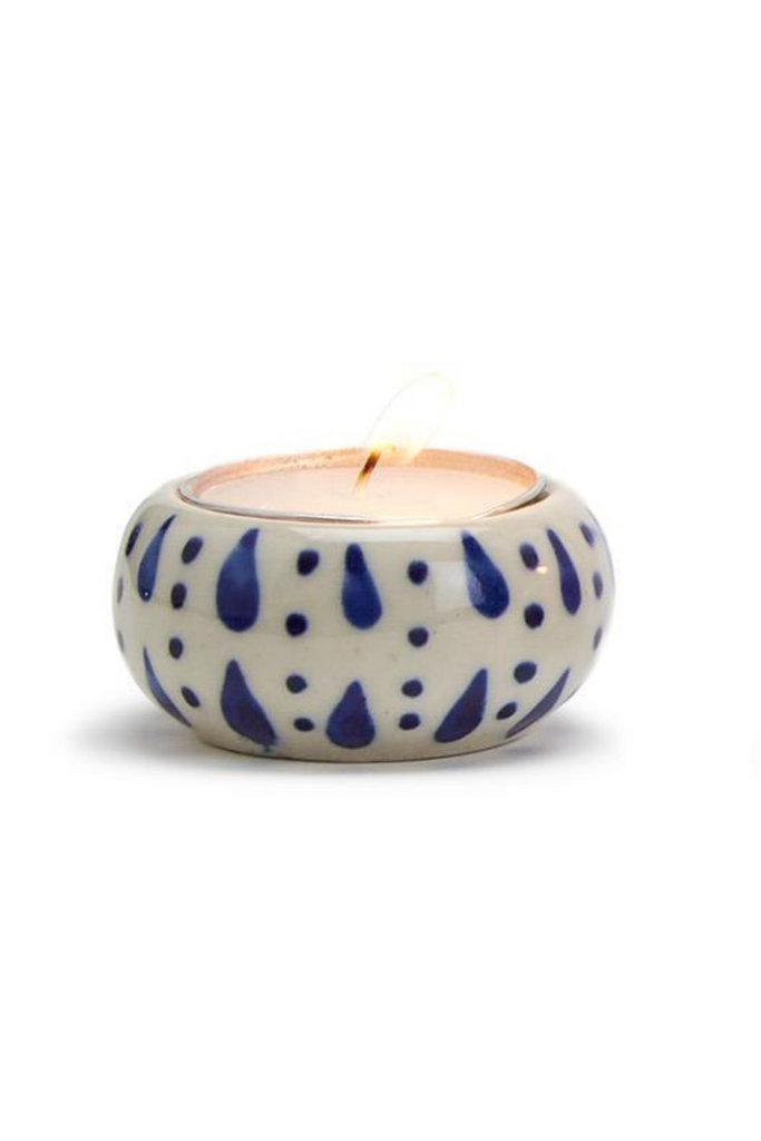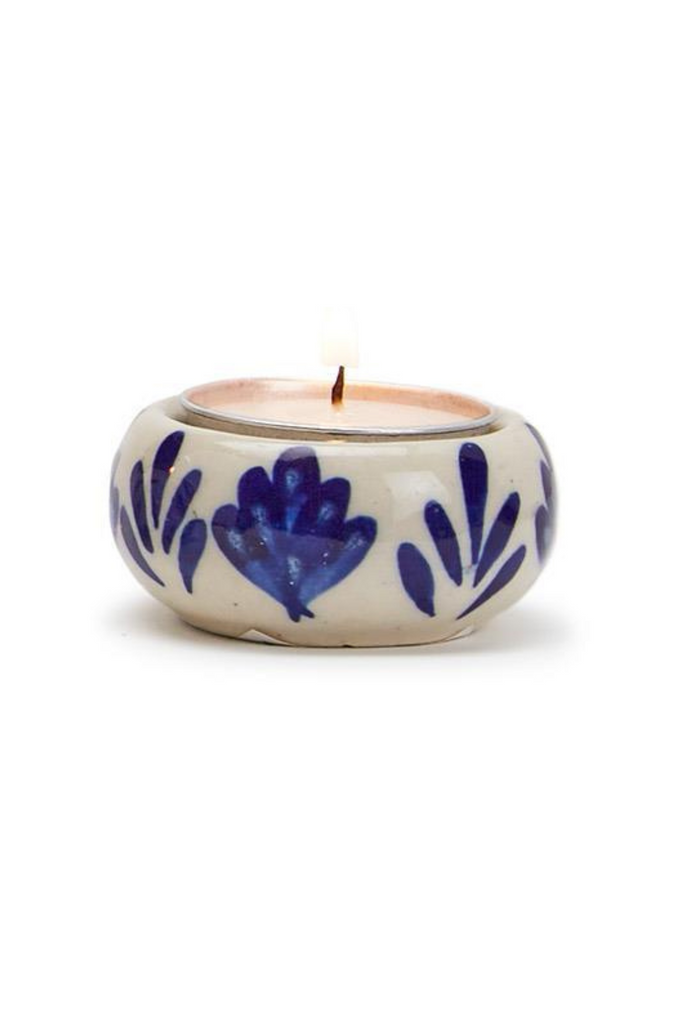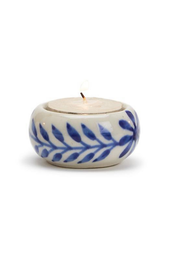 Blue and White Chinoiserie Candleholder with Tealight Candle