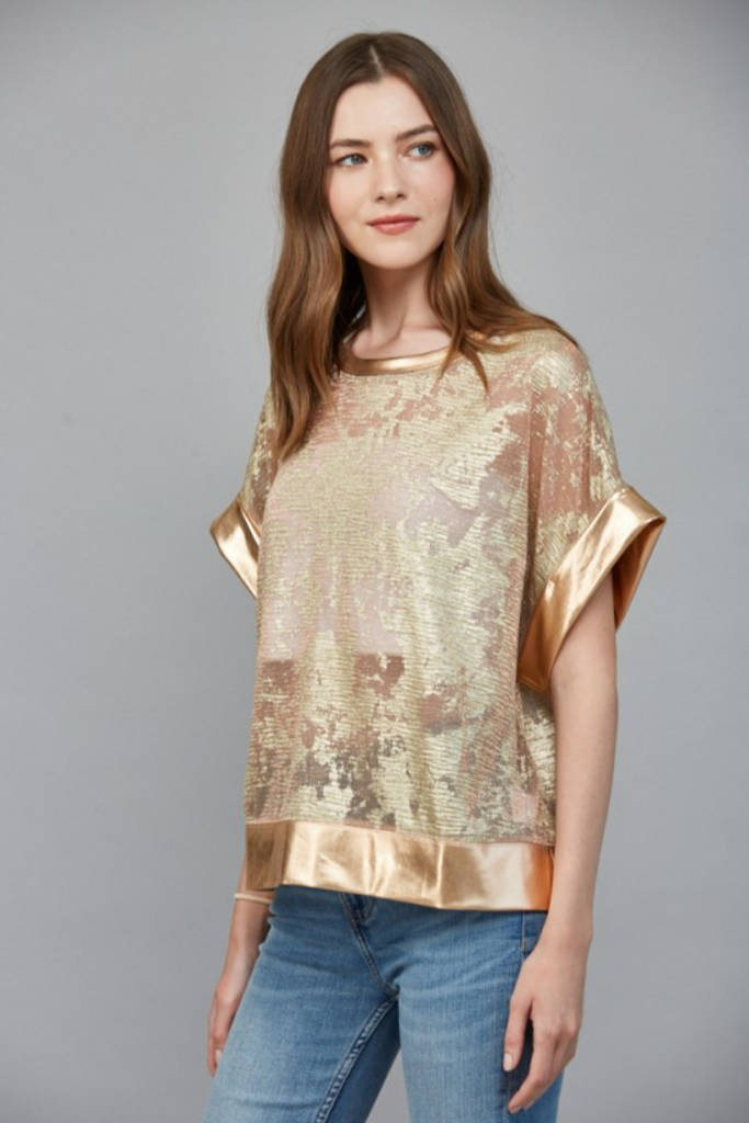ABSTRACT METALLIC PATTERN DROP SHOULDER WIDE SLV TOP
