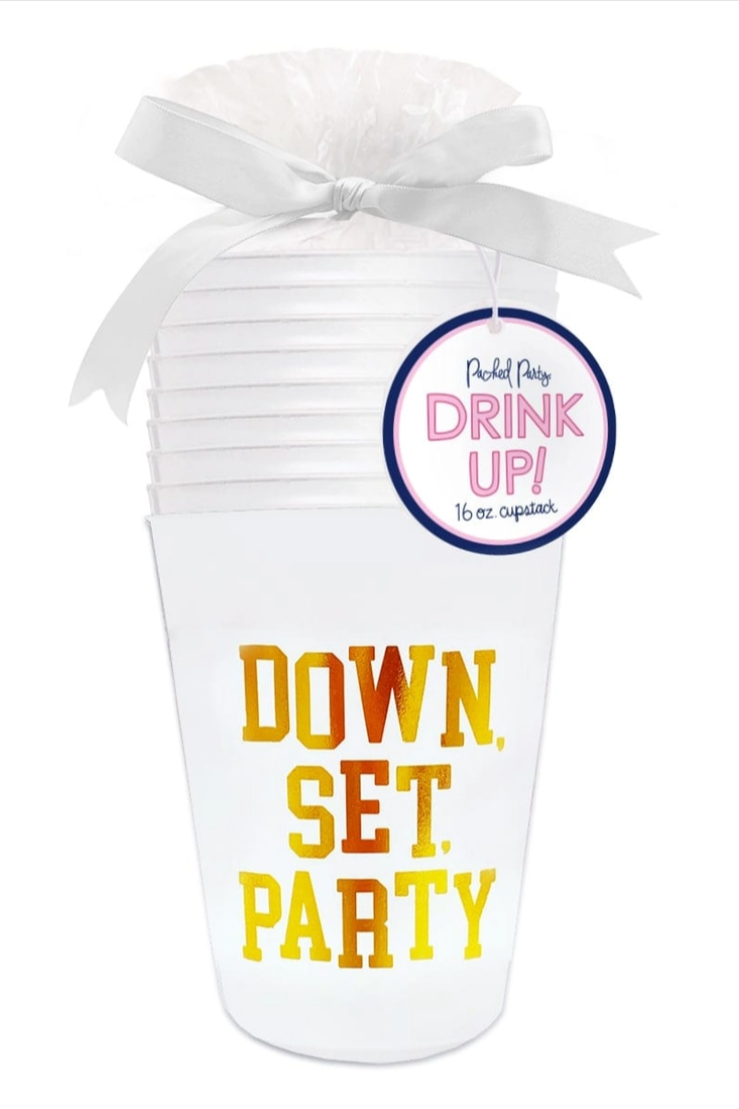 - "Down, Set, Party" printed on each