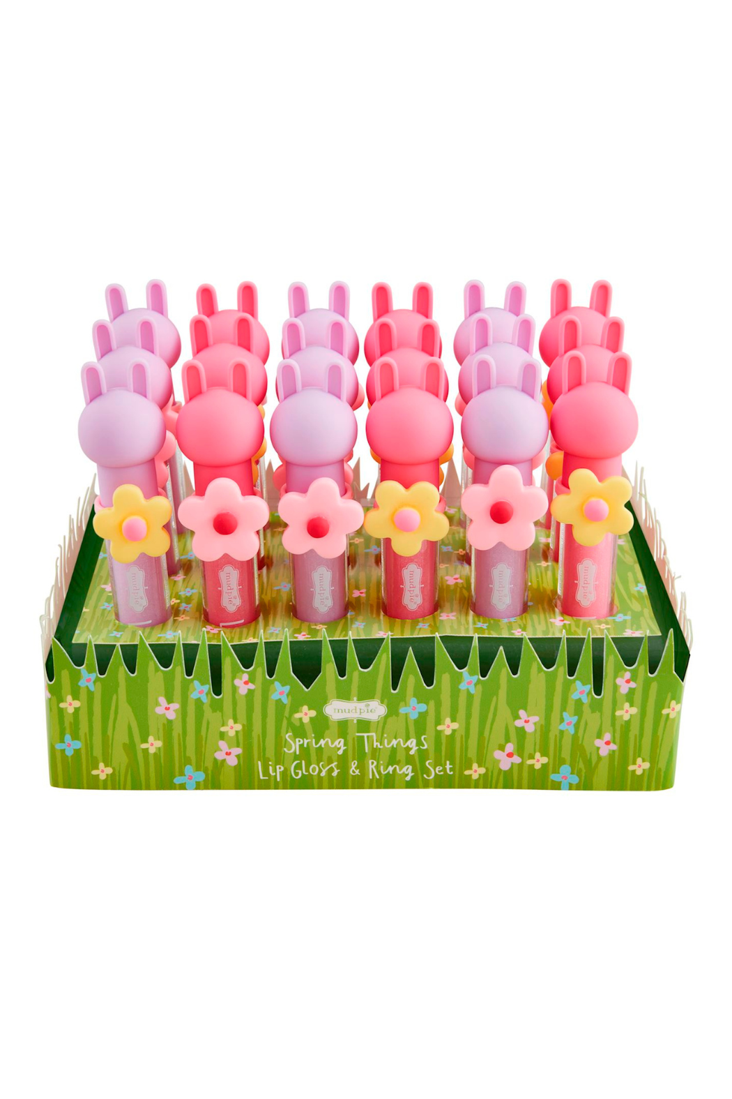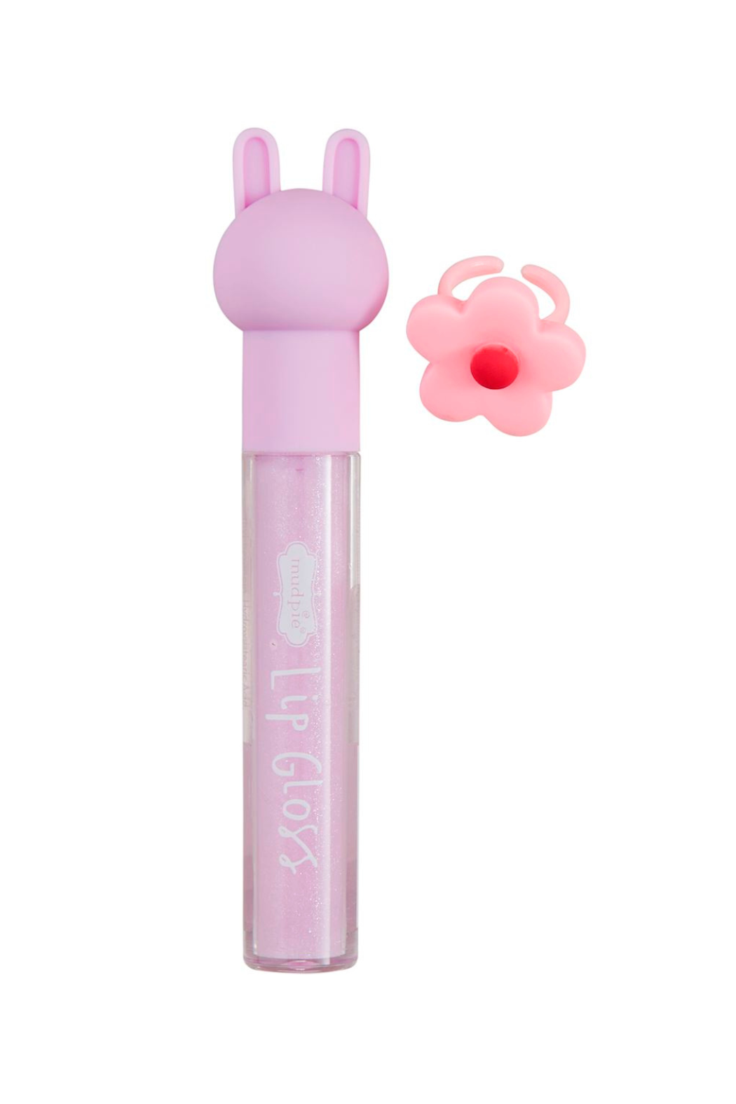 2-piece set. Bunny topped lip gloss wand with flower ring